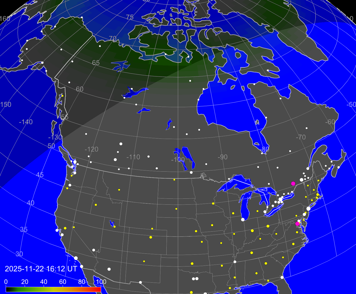 Вероятность полярных сияний в городах Канады