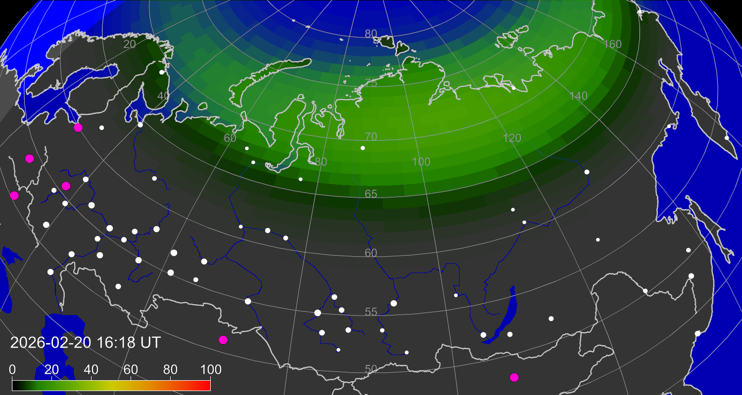 Зона полярных (северных) сияний над территорией РФ