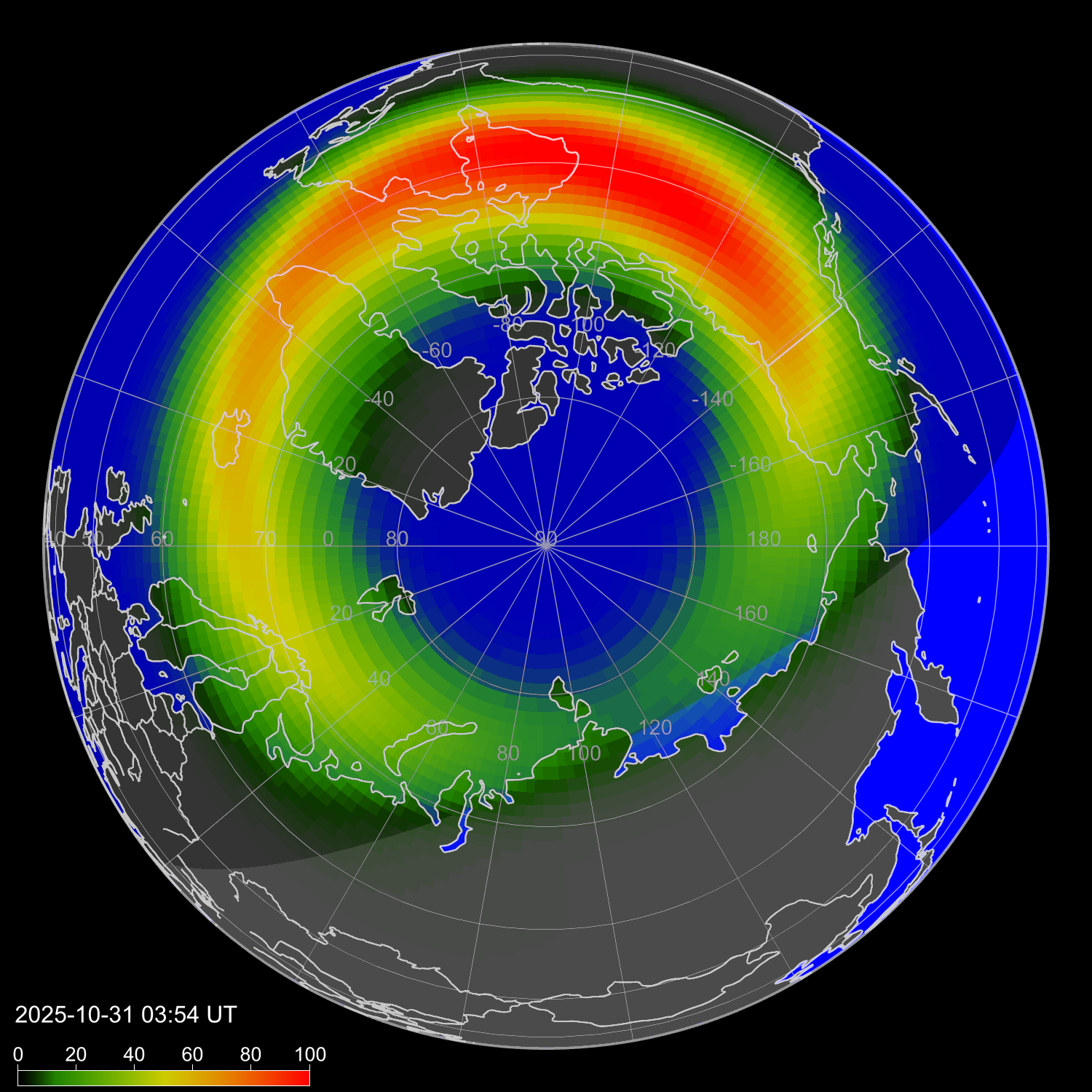 Зона полярных сияний в северном полушарии