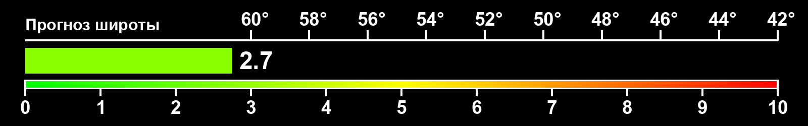 Индекс интенсивности полярных сияний и теоретически возможная широта наблюдений для ночного времени в западном полушарии по состоянию на 2026-01-18 23:59 (конец дня) по местному времени