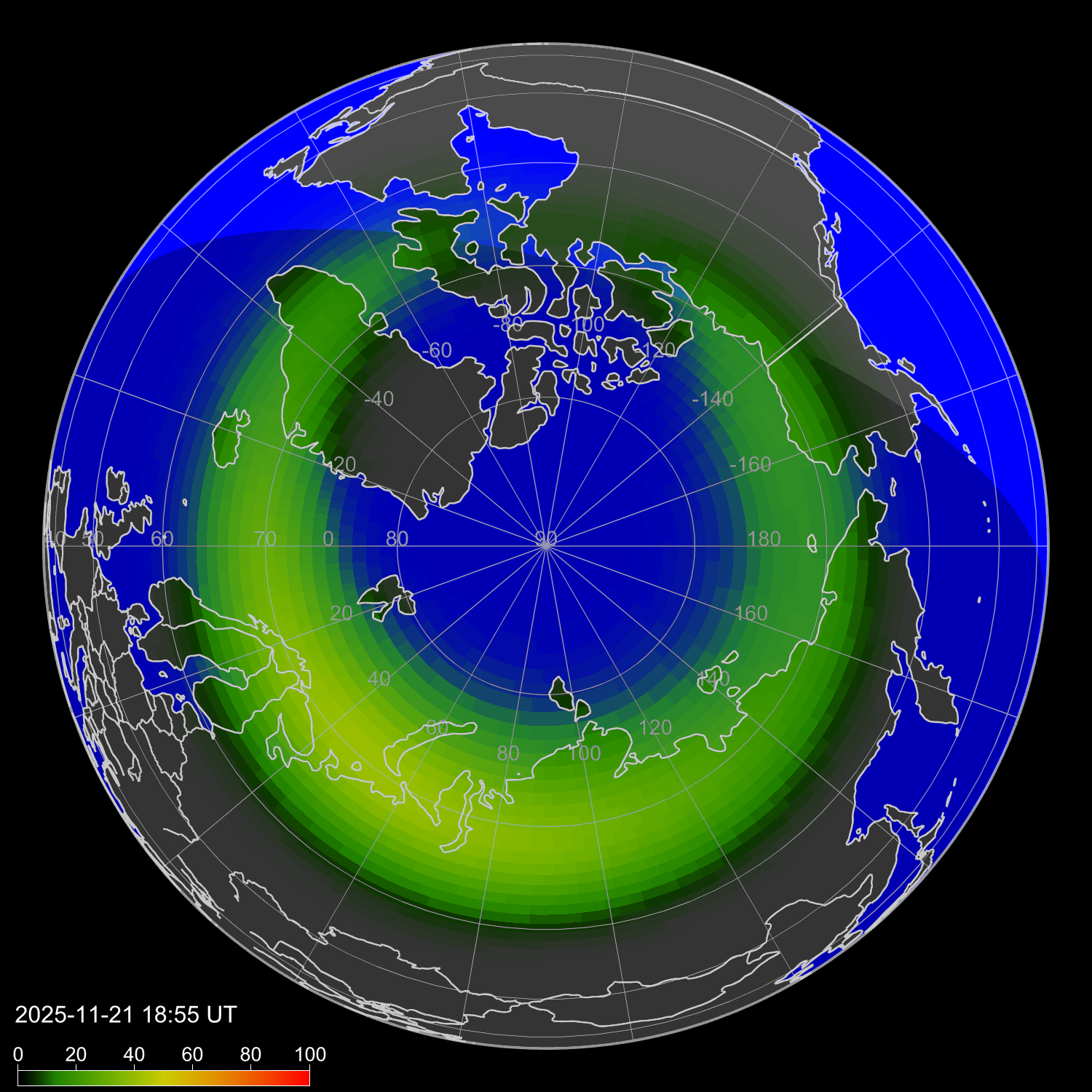Интенсивность полярных сияний