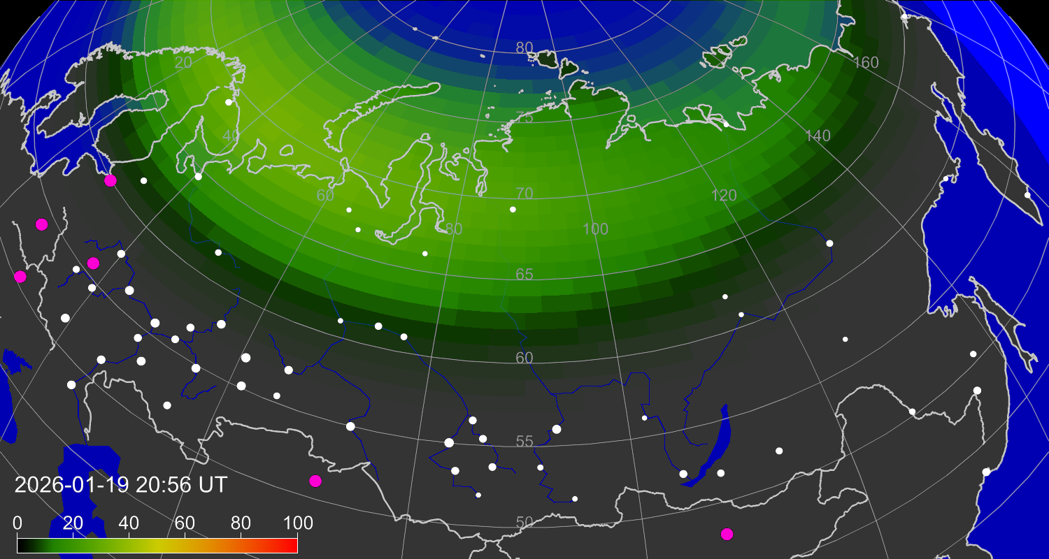 Зона полярных (северных) сияний над территорией Евразии