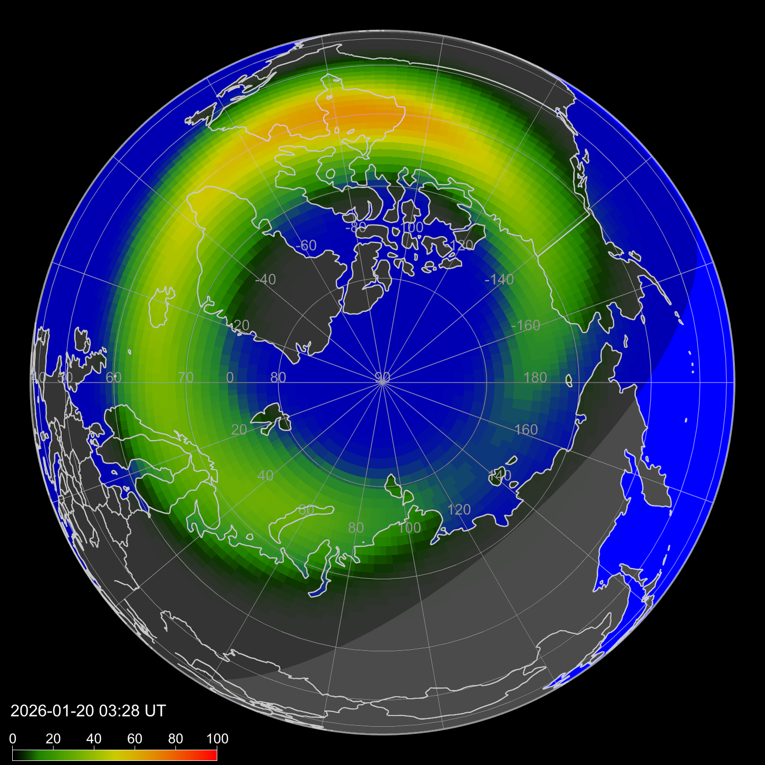 Интенсивность полярных сияний