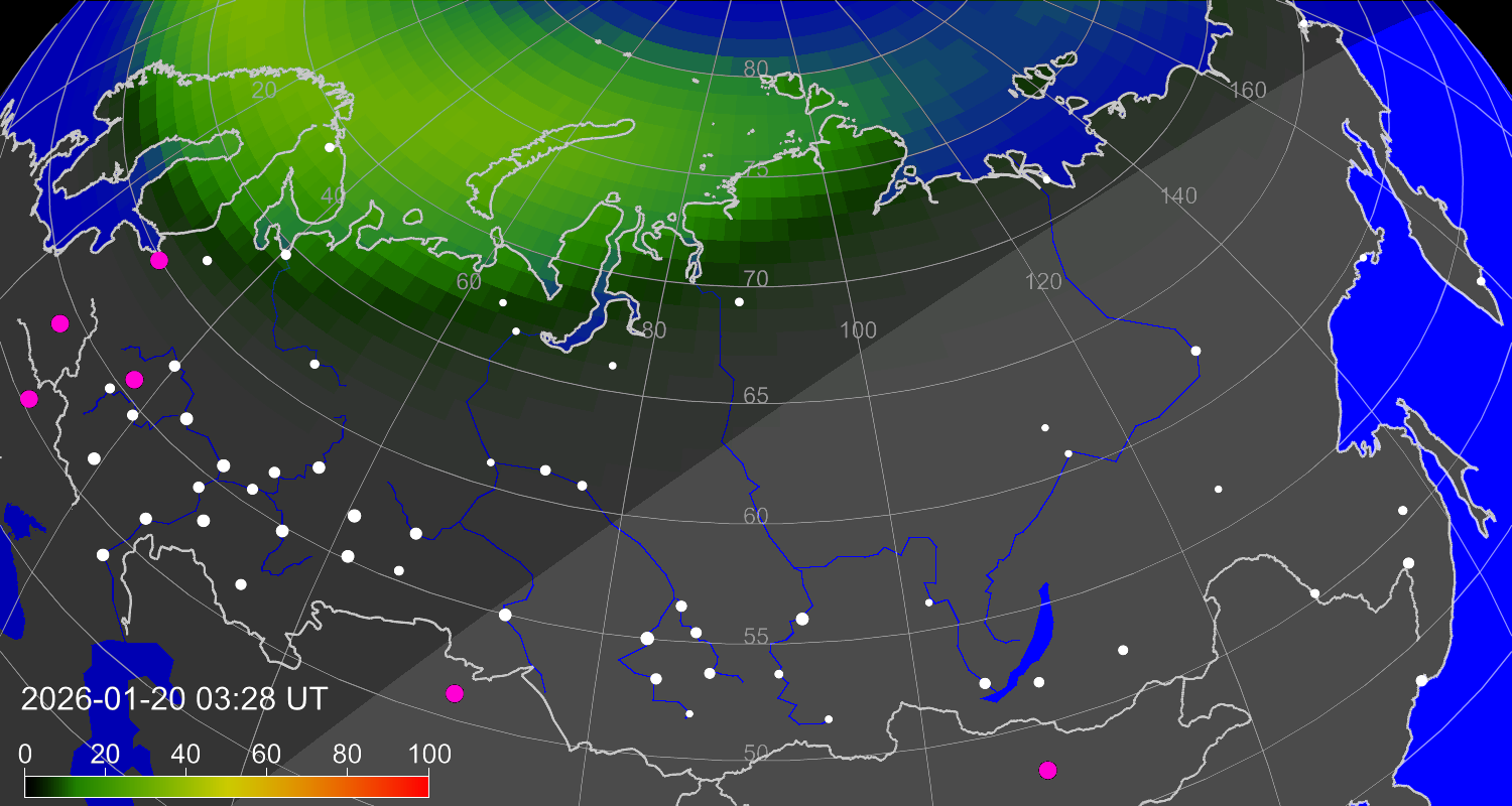 Вероятность полярных сияний в городах Российской Федерации
