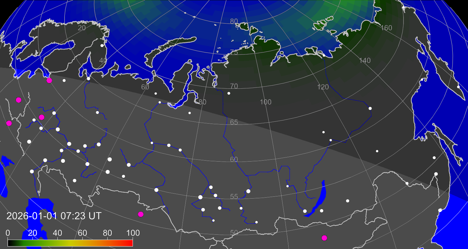 Зона полярных (северных) сияний над территорией Евразии