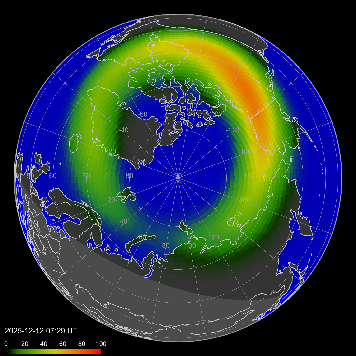 Интенсивность полярных сияний