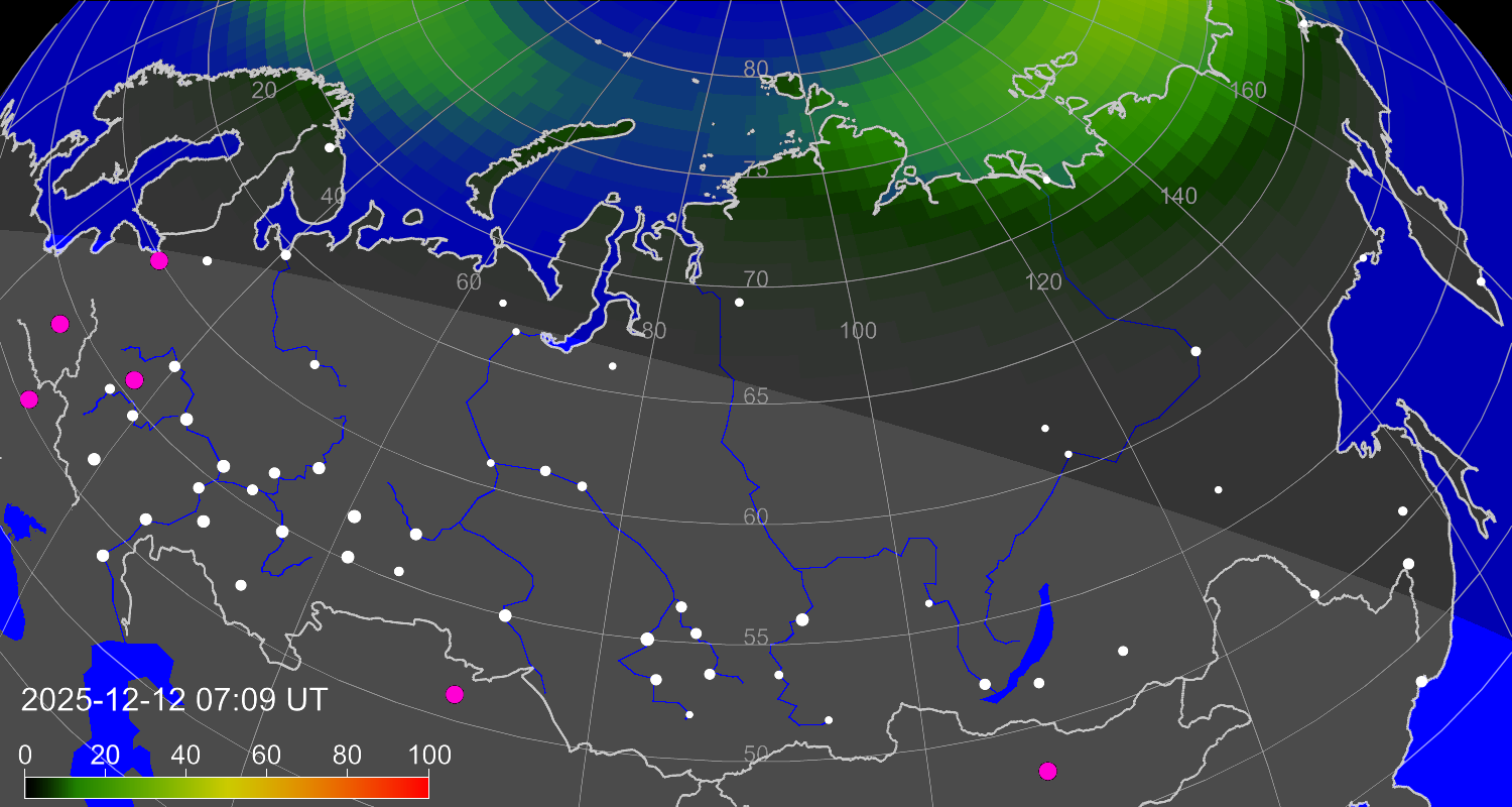 Зона полярных (северных) сияний над территорией Евразии