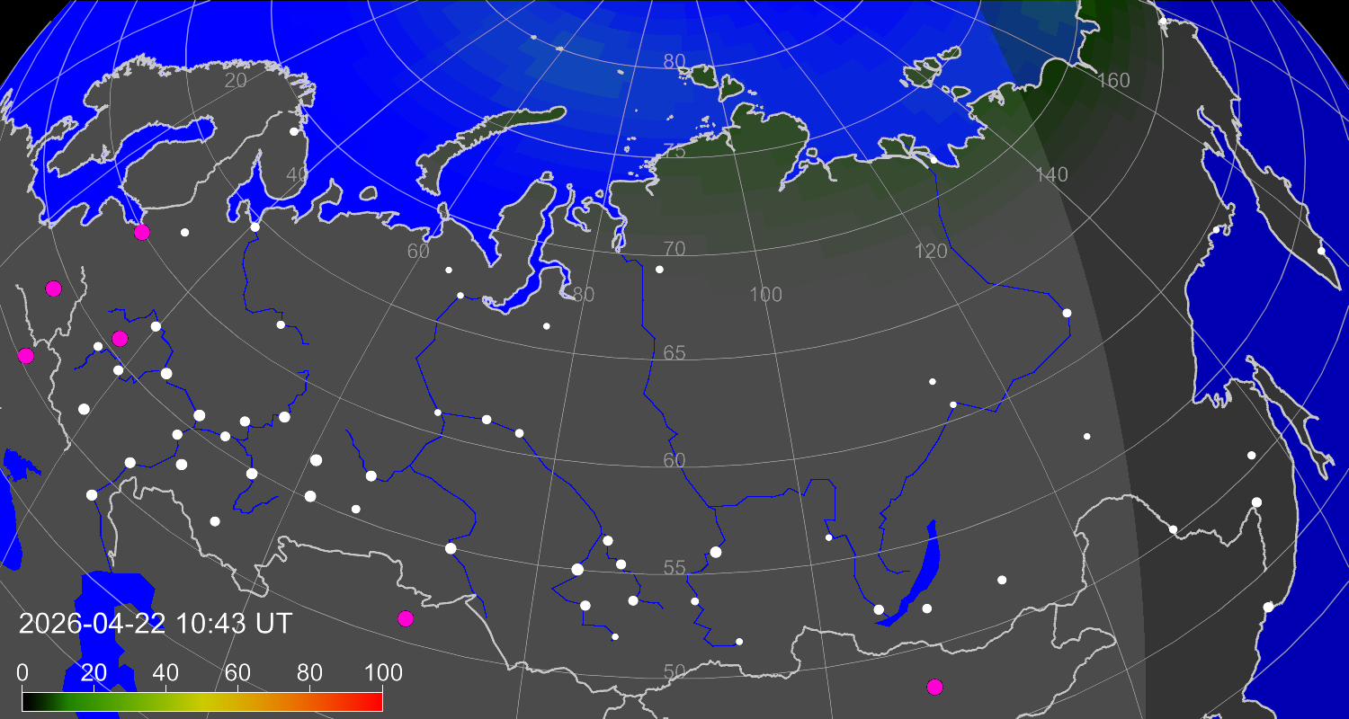 Вероятность полярных сияний в городах Российской Федерации