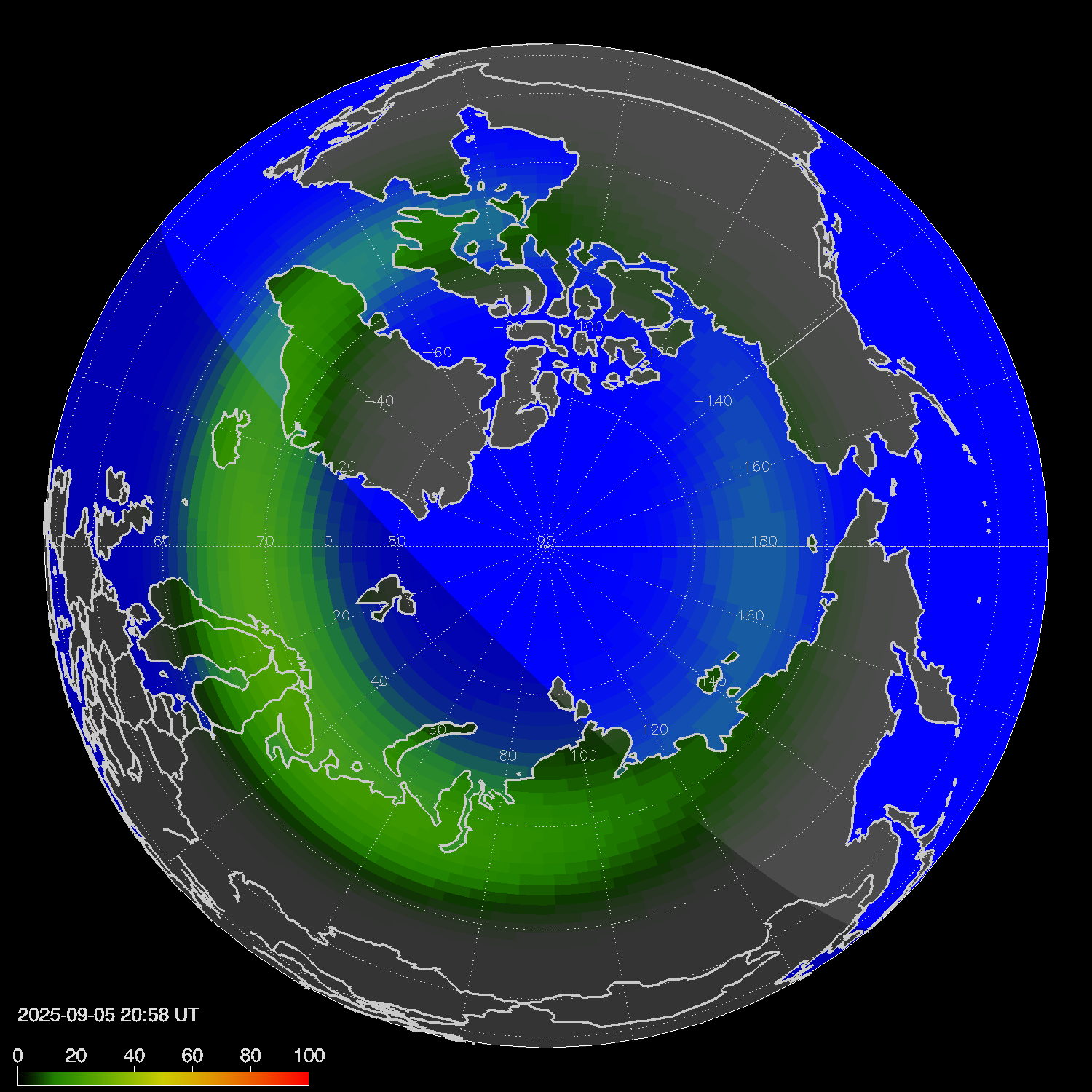 Зона полярных сияний в северном полушарии
