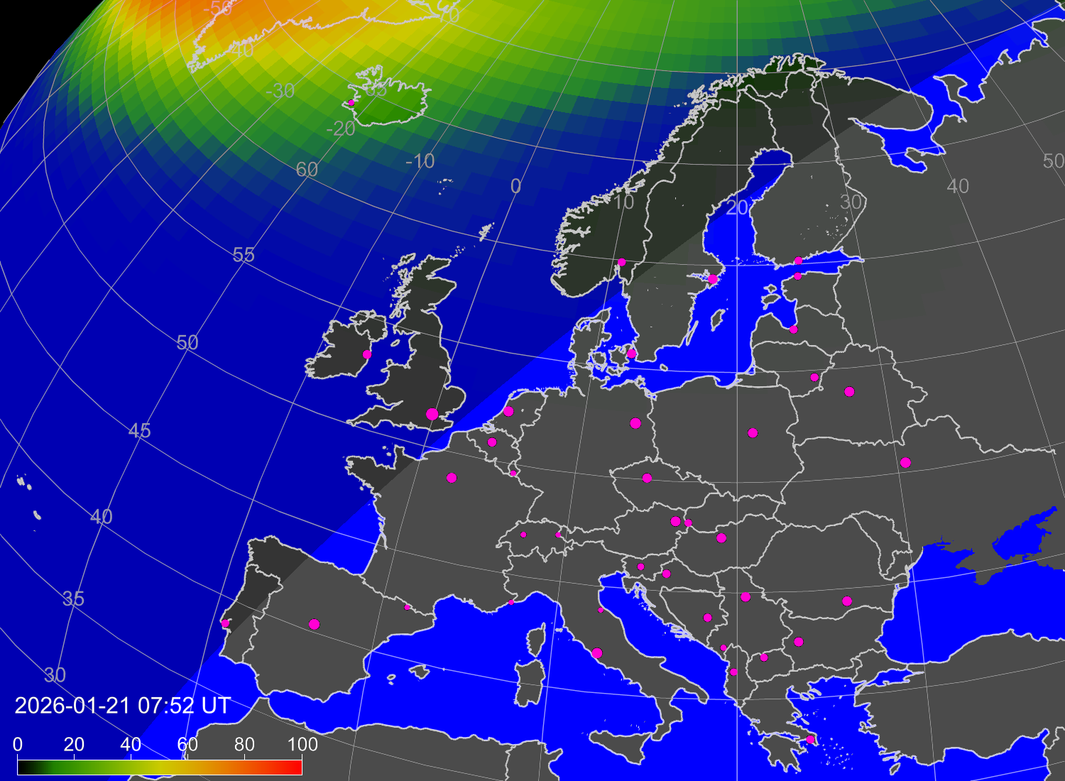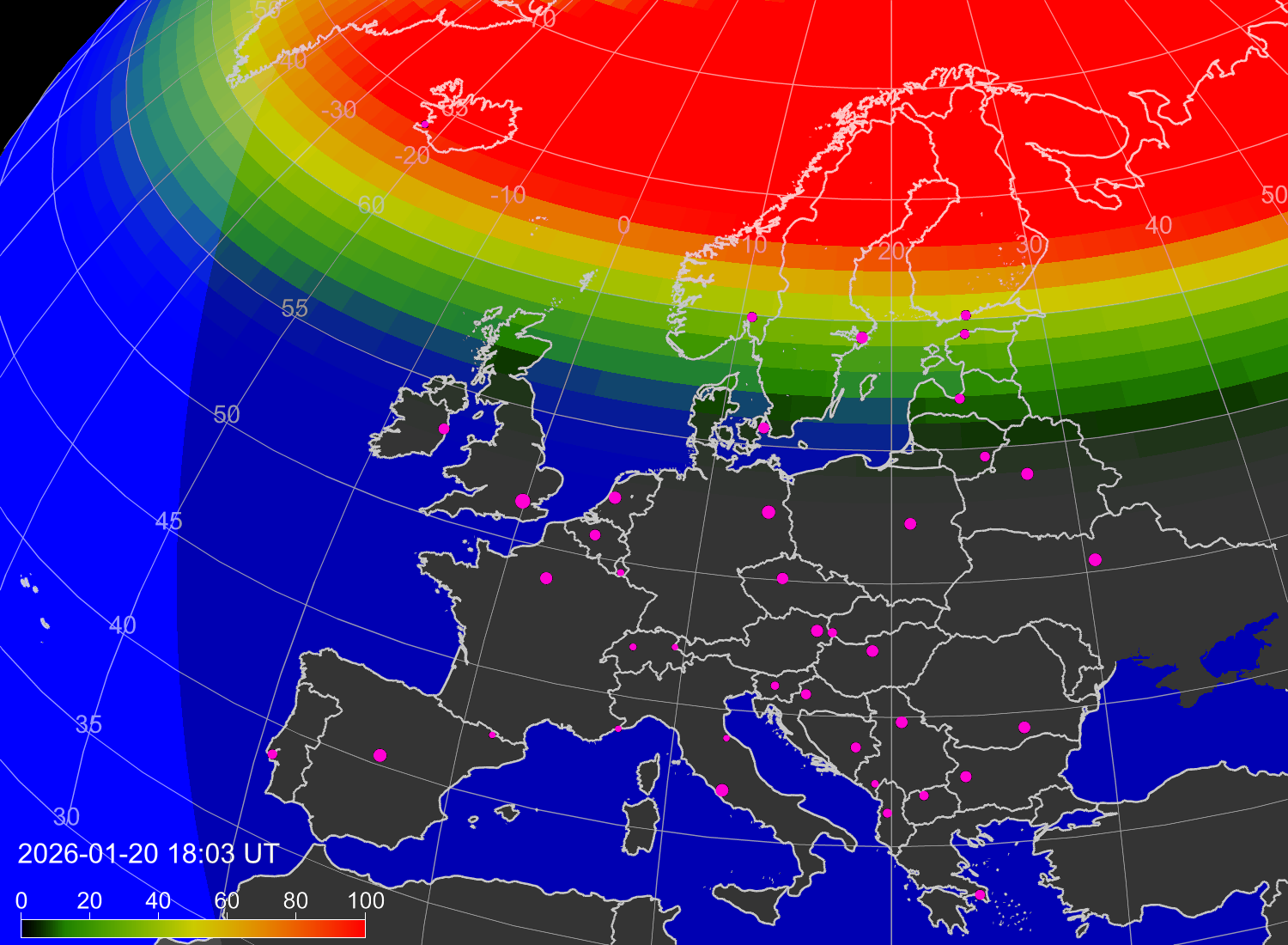 Вероятность полярных сияний в Варшаве