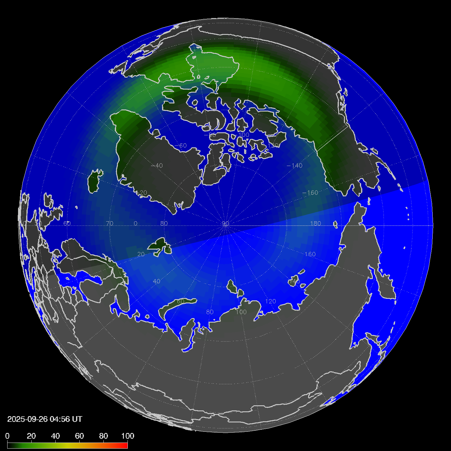 Зона полярных сияний в северном полушарии