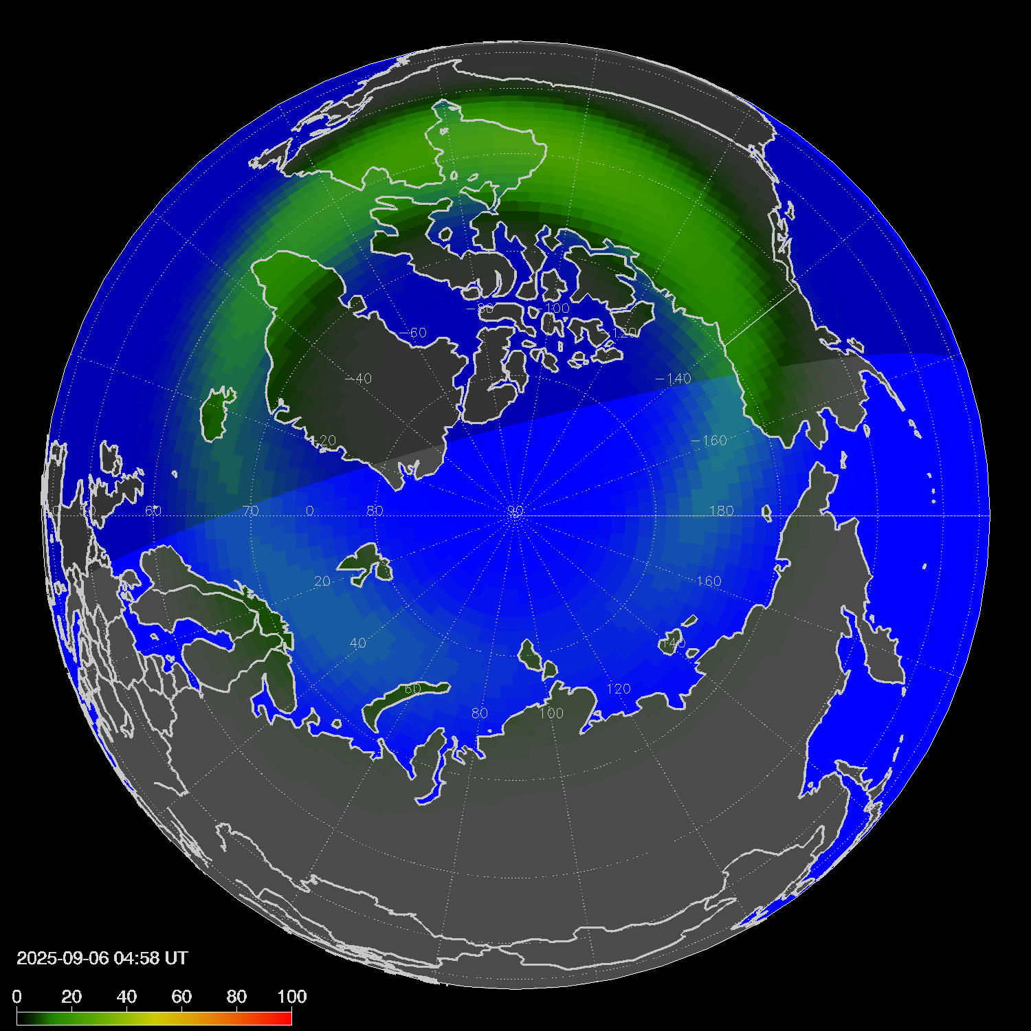 Зона полярных сияний в северном полушарии