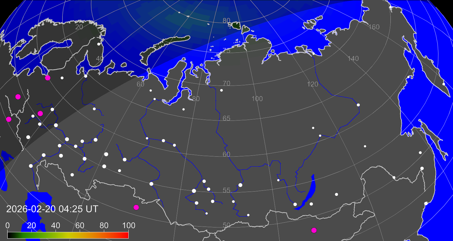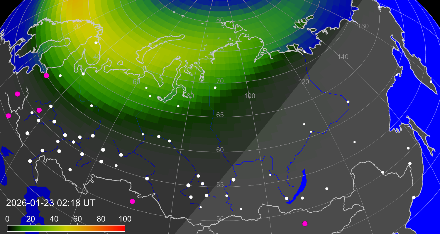 Вероятность полярных сияний в городах Российской Федерации