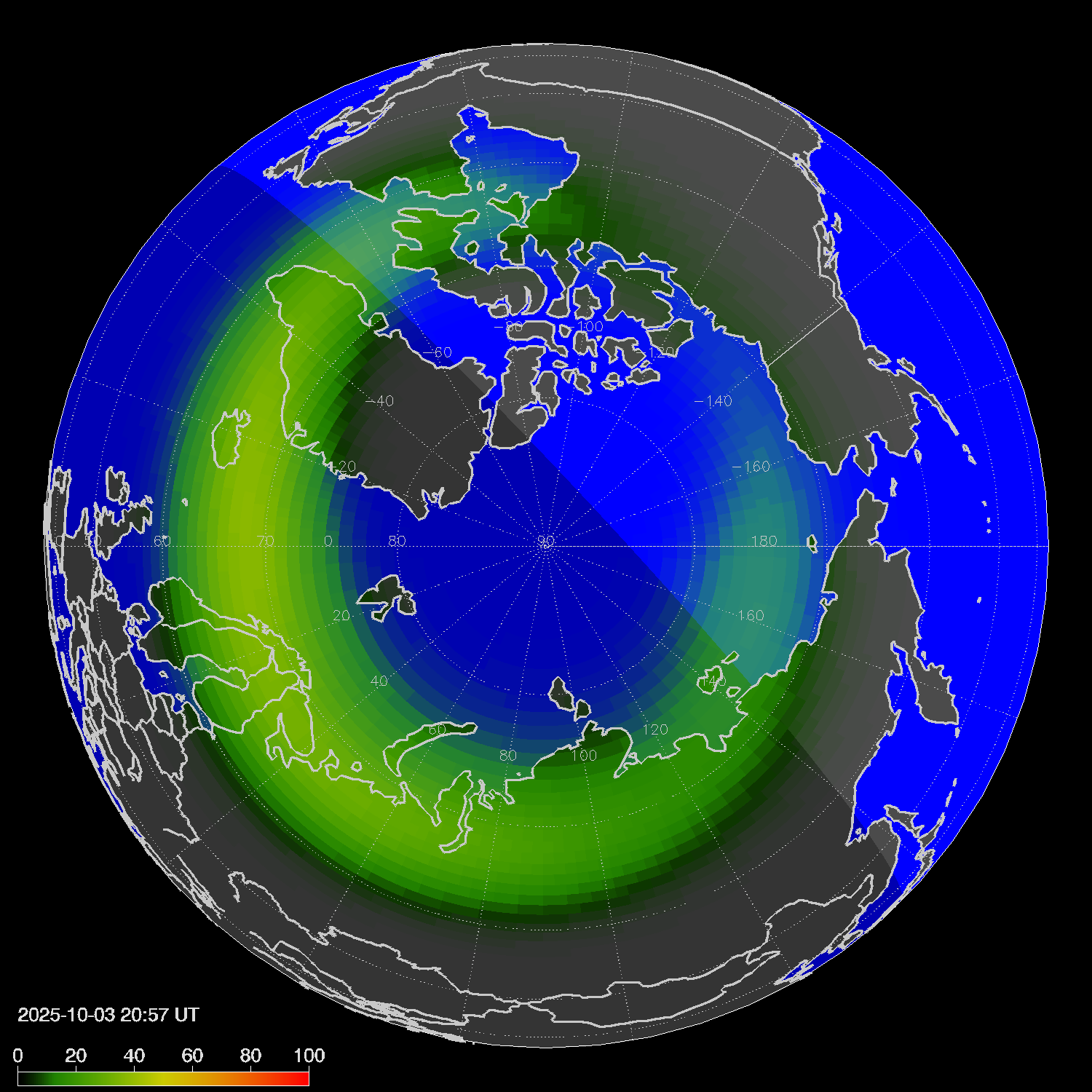 Зона полярных сияний в северном полушарии