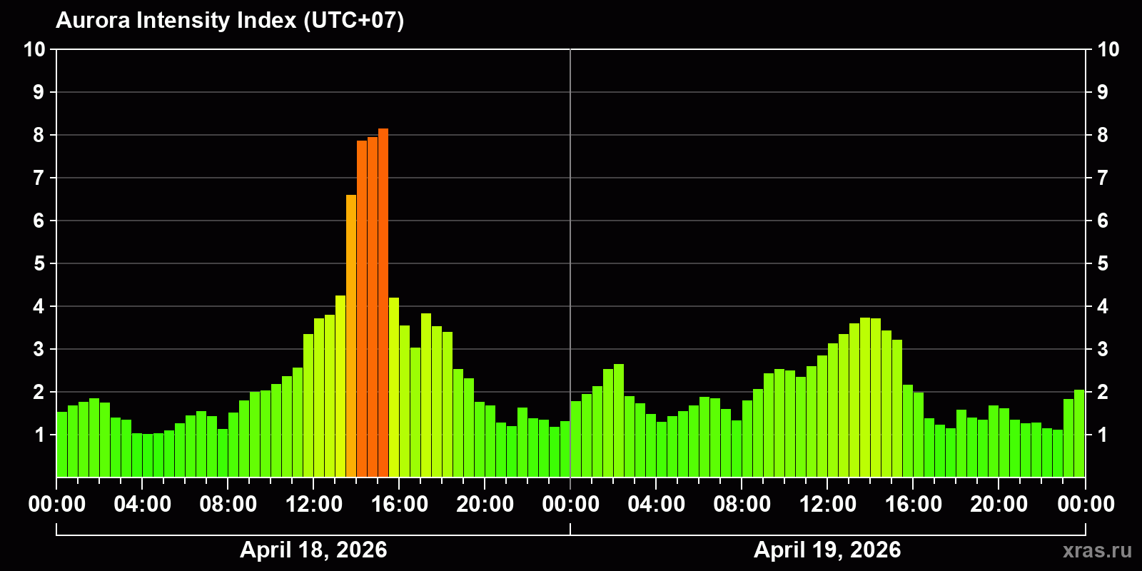 Changes in the auroral intensity index from 2026-04-18 to 2026-04-19 local time