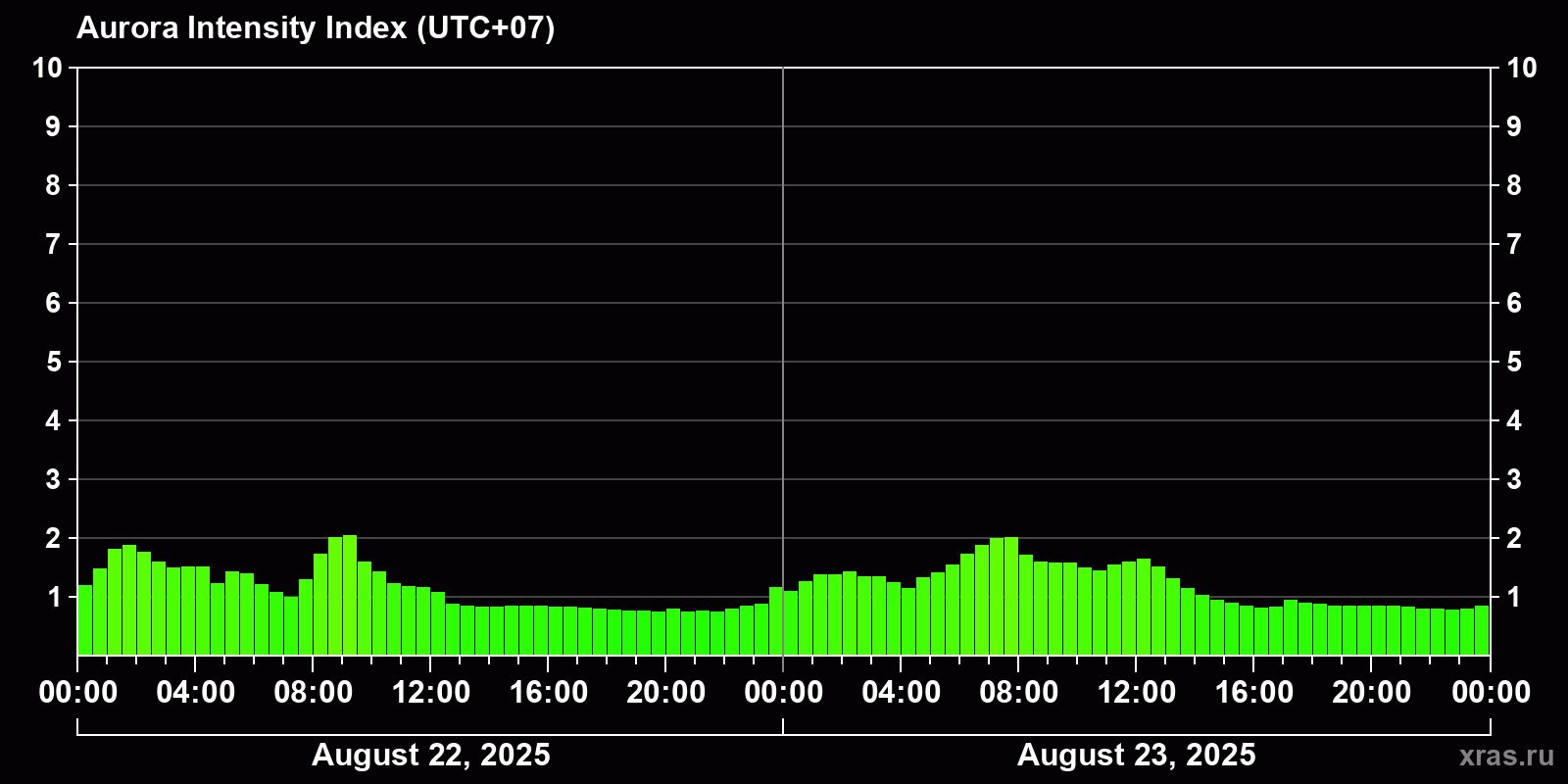 Auroras (northern lights) in Abakan — Aug 23, 2025