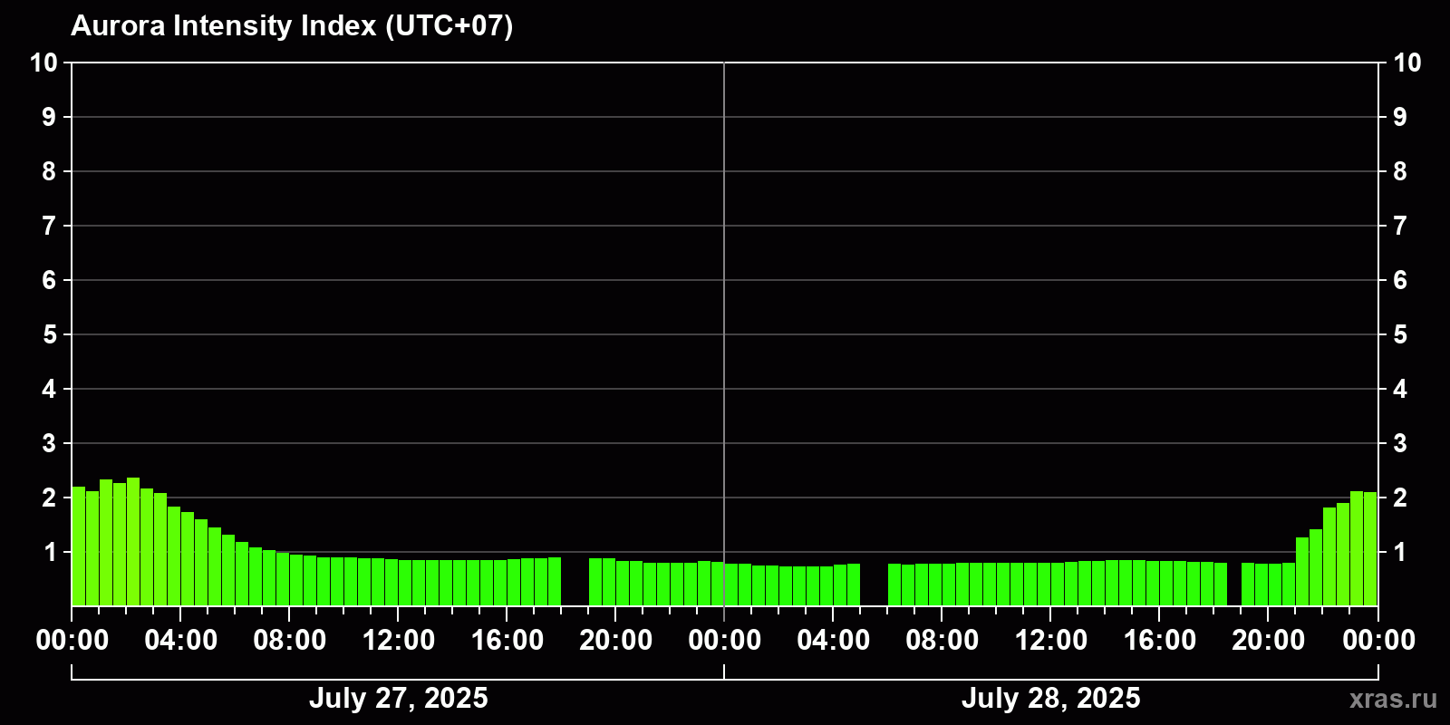 Auroras (northern lights) in Abakan — Jul 28, 2025