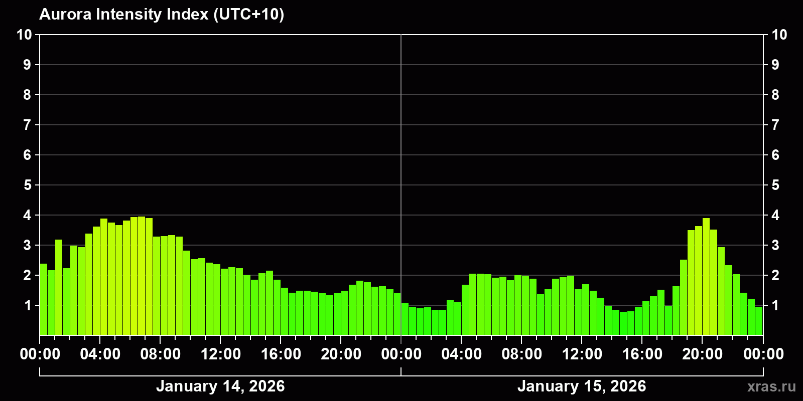 Changes in the auroral intensity index from 2026-01-14 to 2026-01-15 local time