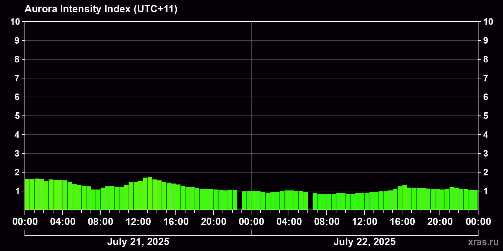 Changes in the auroral intensity index from 2025-07-21 to 2025-07-22 local time