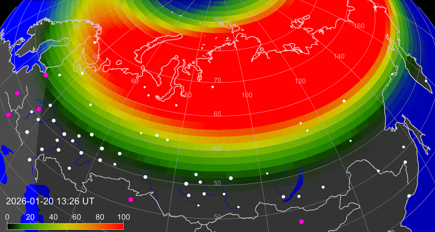 Вероятность полярных сияний в Агре