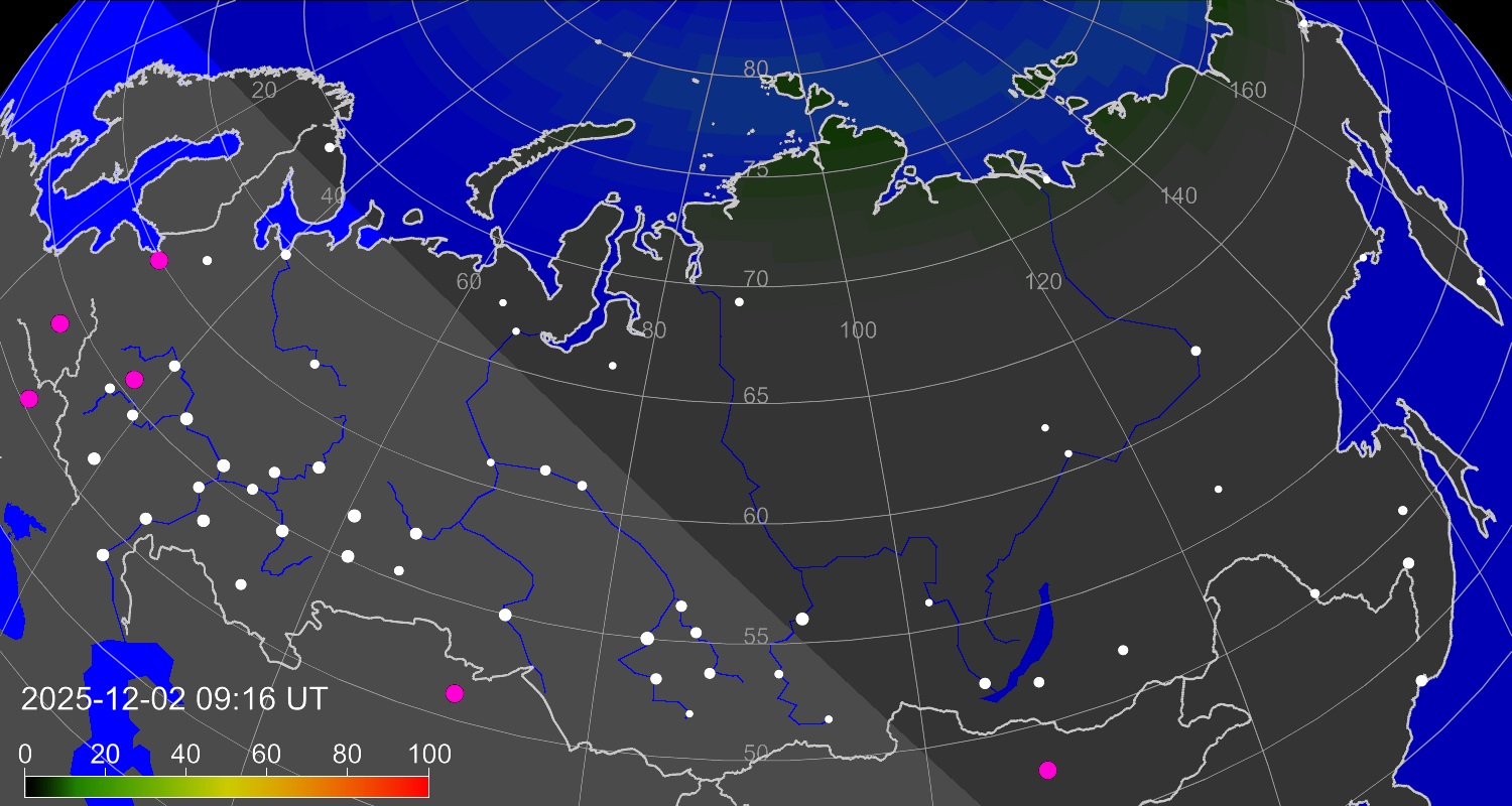 Вероятность полярных сияний в Алигархе