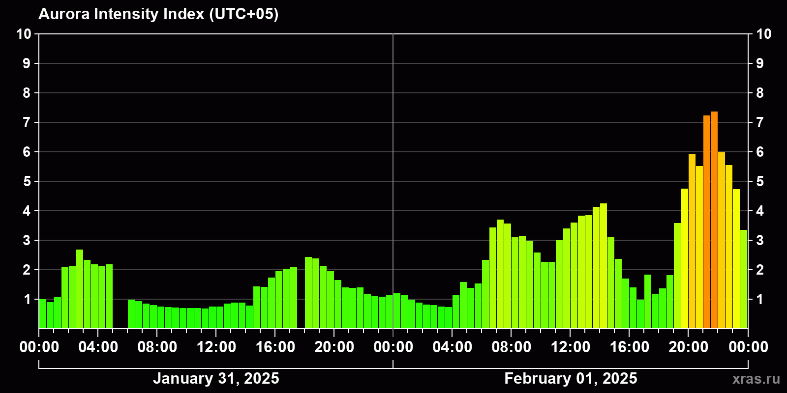 Auroras (northern lights) in Almaty — Feb 01, 2025