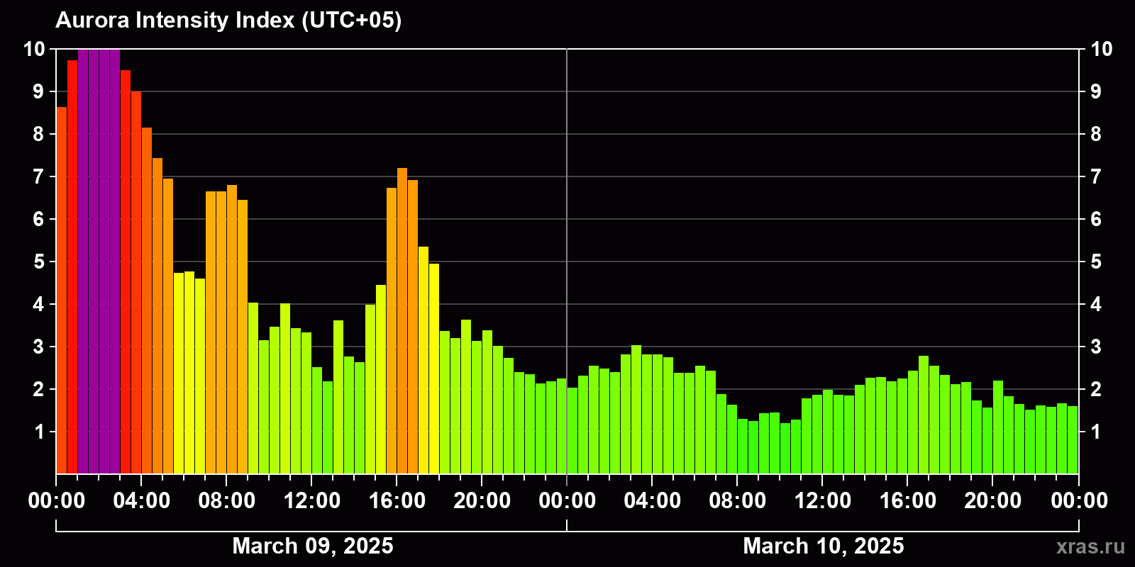 Auroras (northern lights) in Almaty — Mar 10, 2025