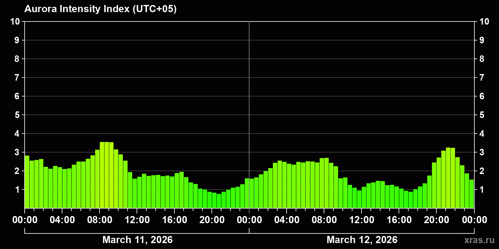 Auroras (northern lights) in Almaty — Mar 12, 2026