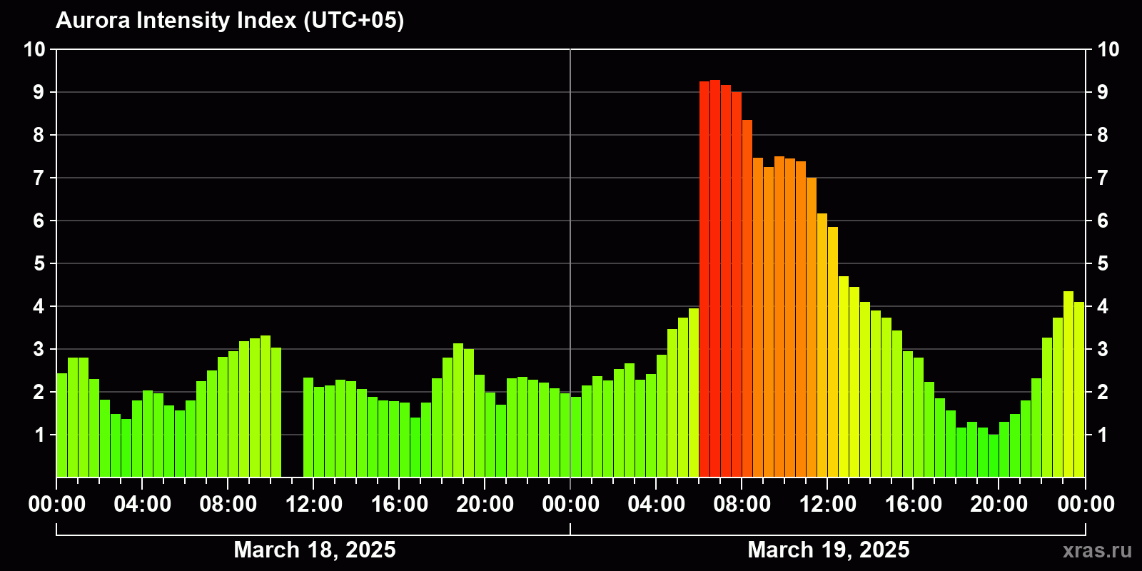Auroras (northern lights) in Almaty — Mar 19, 2025