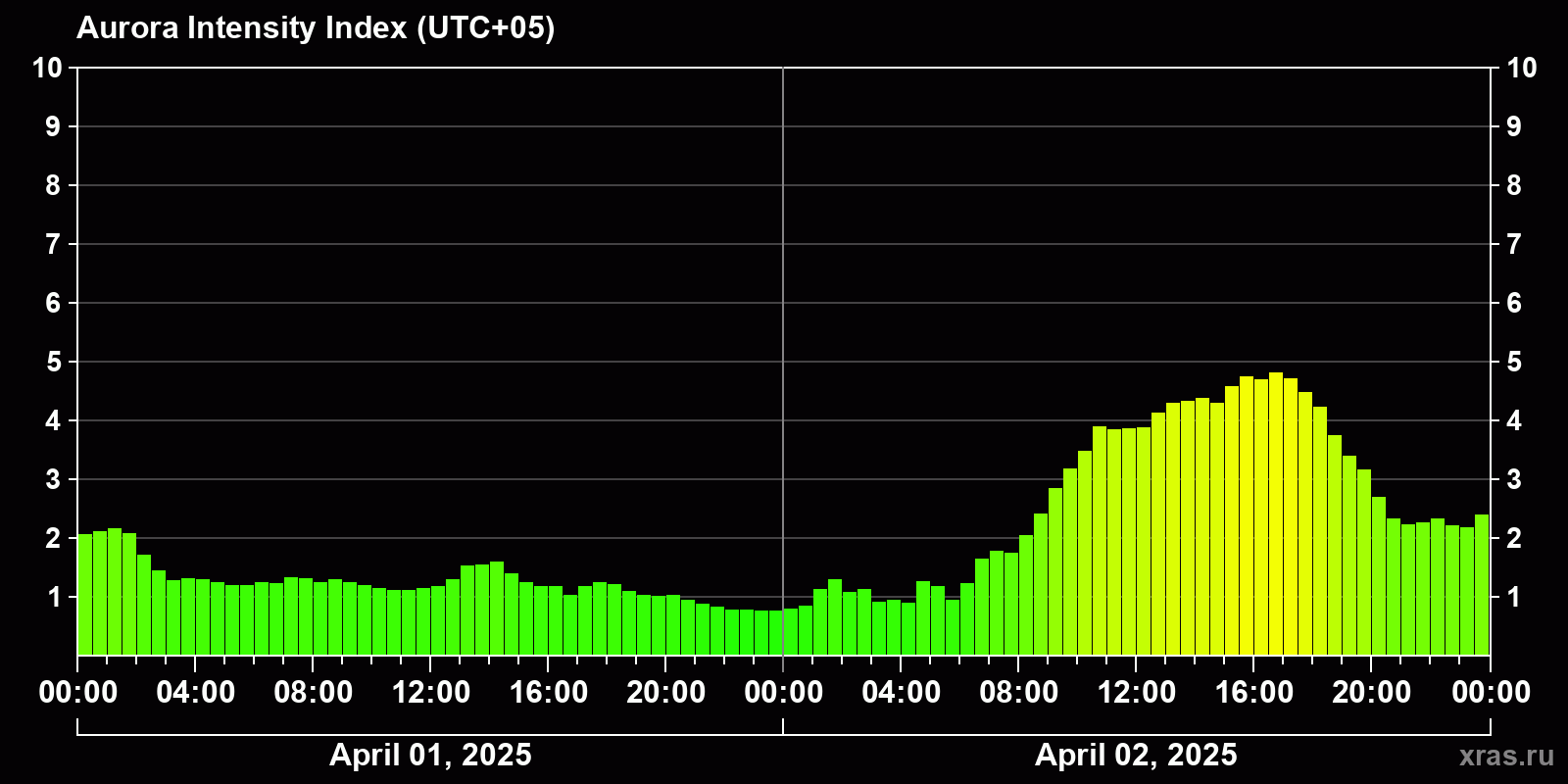 Auroras (northern lights) in Almaty — Apr 02, 2025