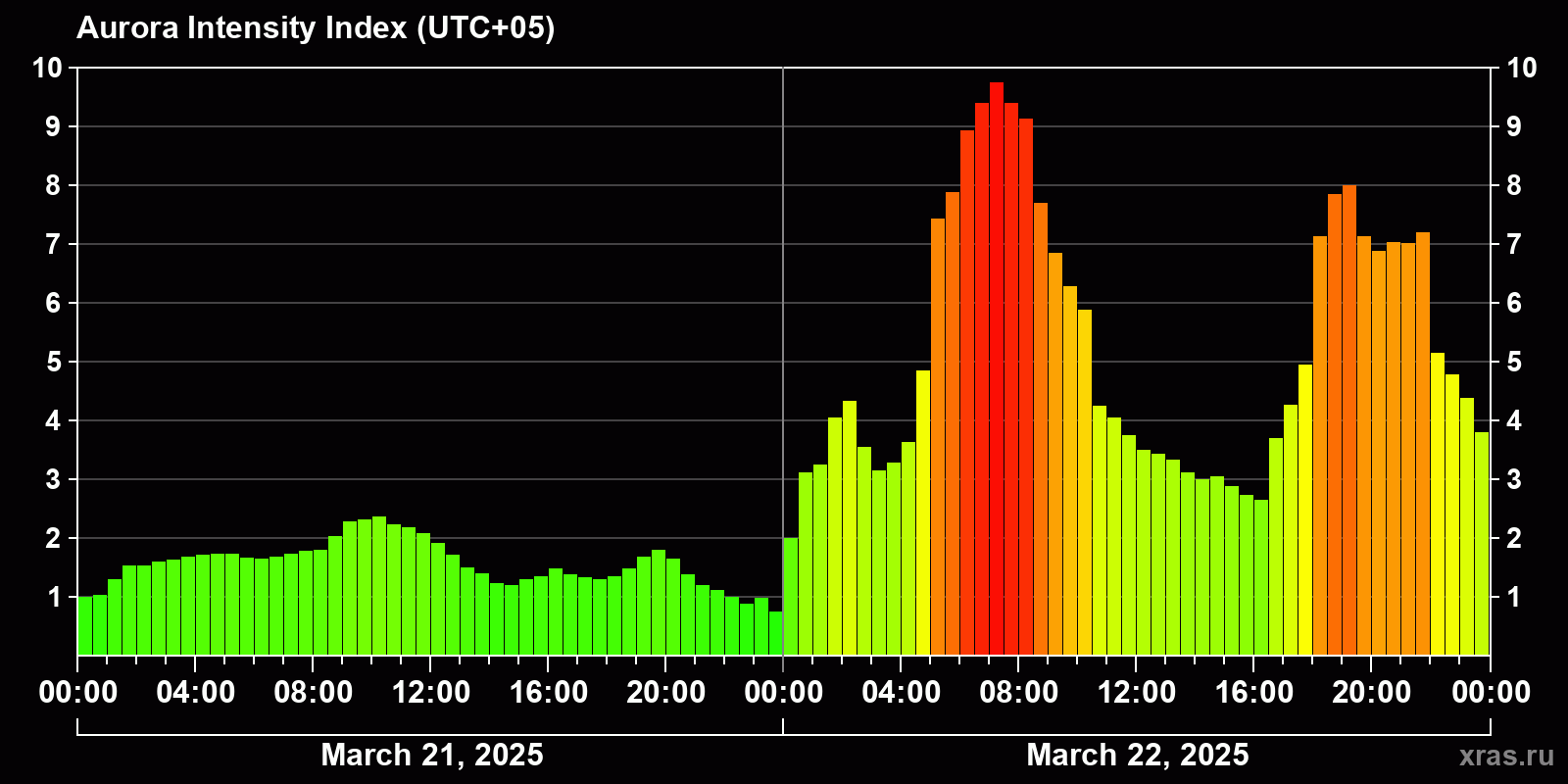 Auroras (northern lights) in Almaty — Mar 22, 2025