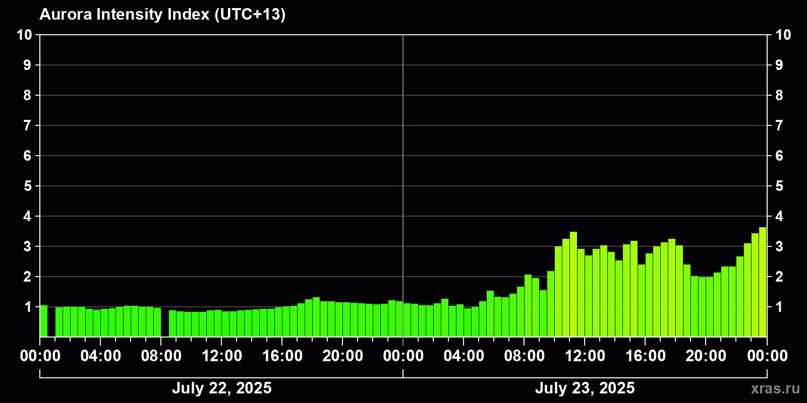 Auroras (northern lights) in Anadyr — Jul 23, 2025