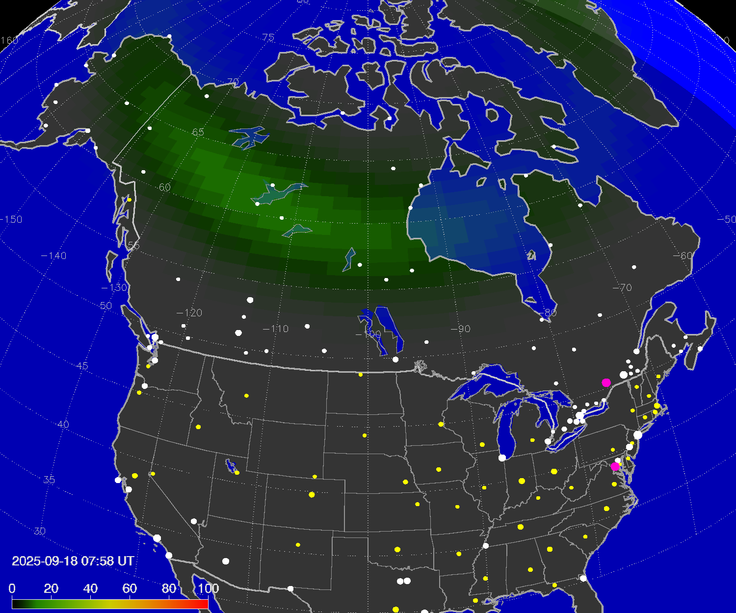 Northern lights (auroras) over North America