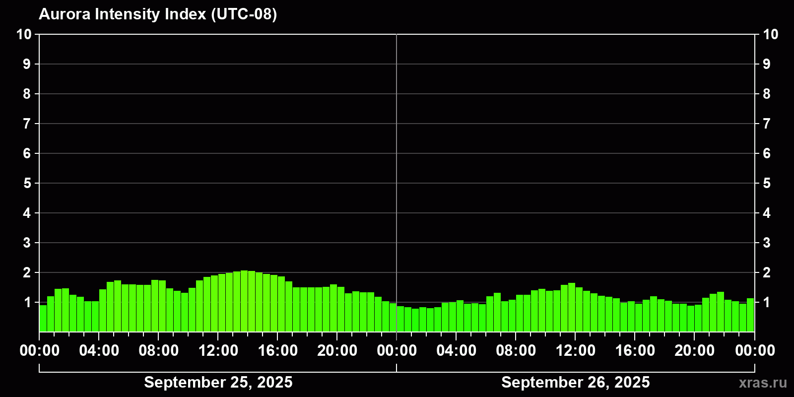 Changes in the auroral intensity index from 2025-09-25 to 2025-09-26 local time
