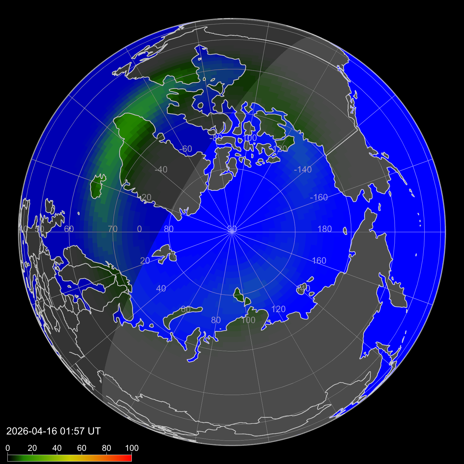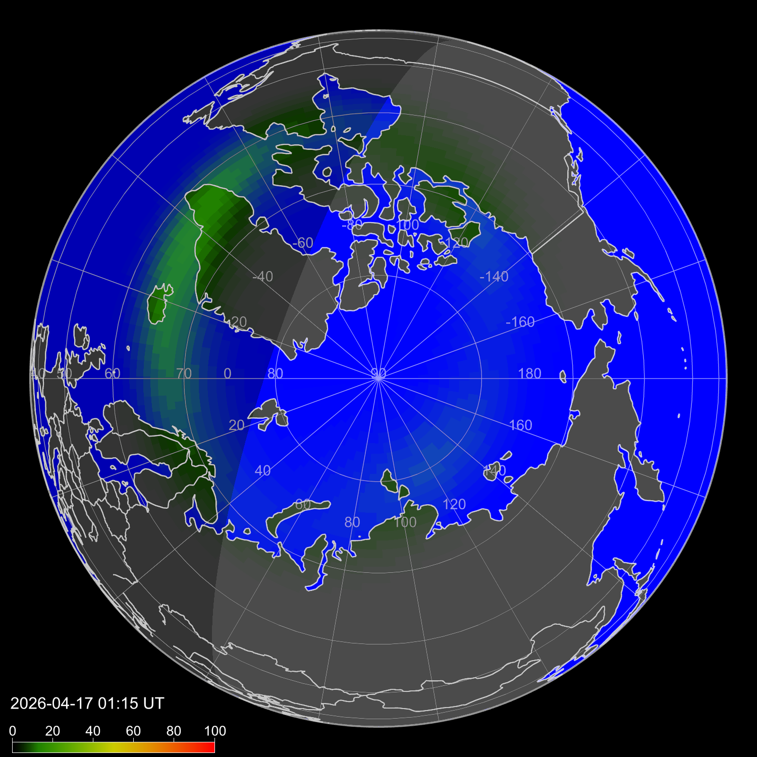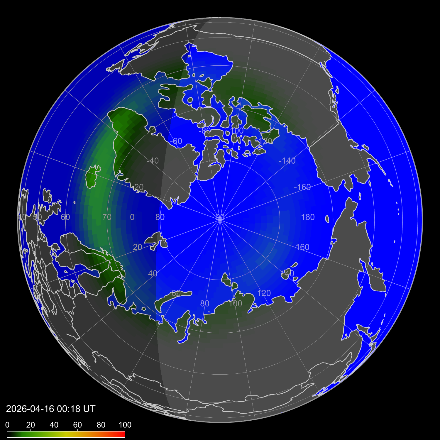 Probability of northern lights in Andorra