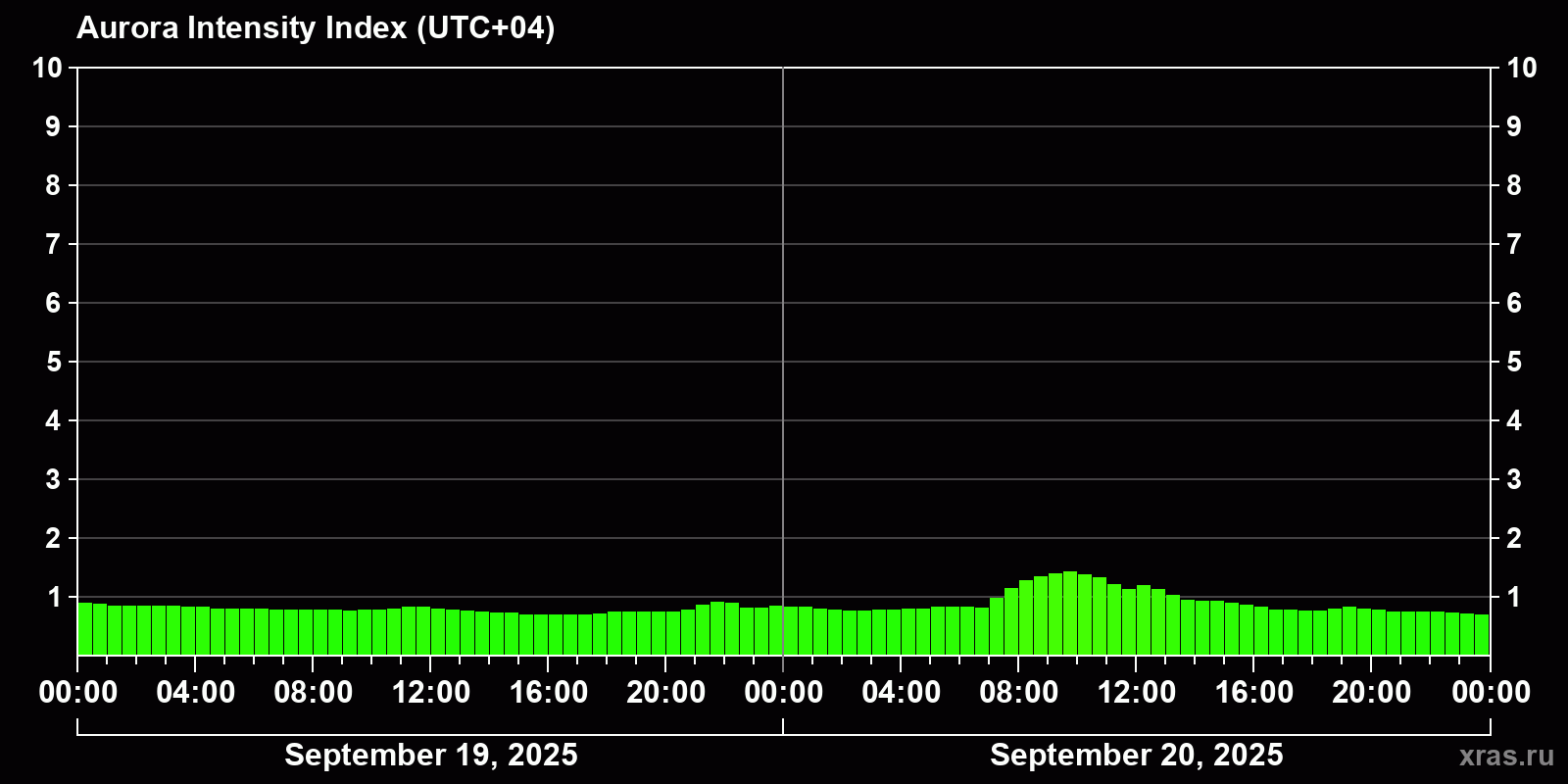Changes in the auroral intensity index from 2025-09-19 to 2025-09-20 local time