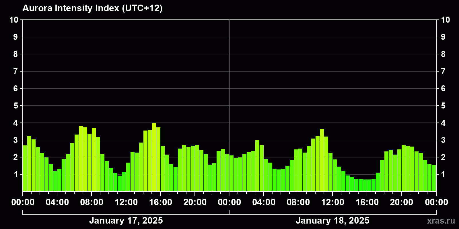 Changes in the auroral intensity index from 2025-01-17 to 2025-01-18 local time
