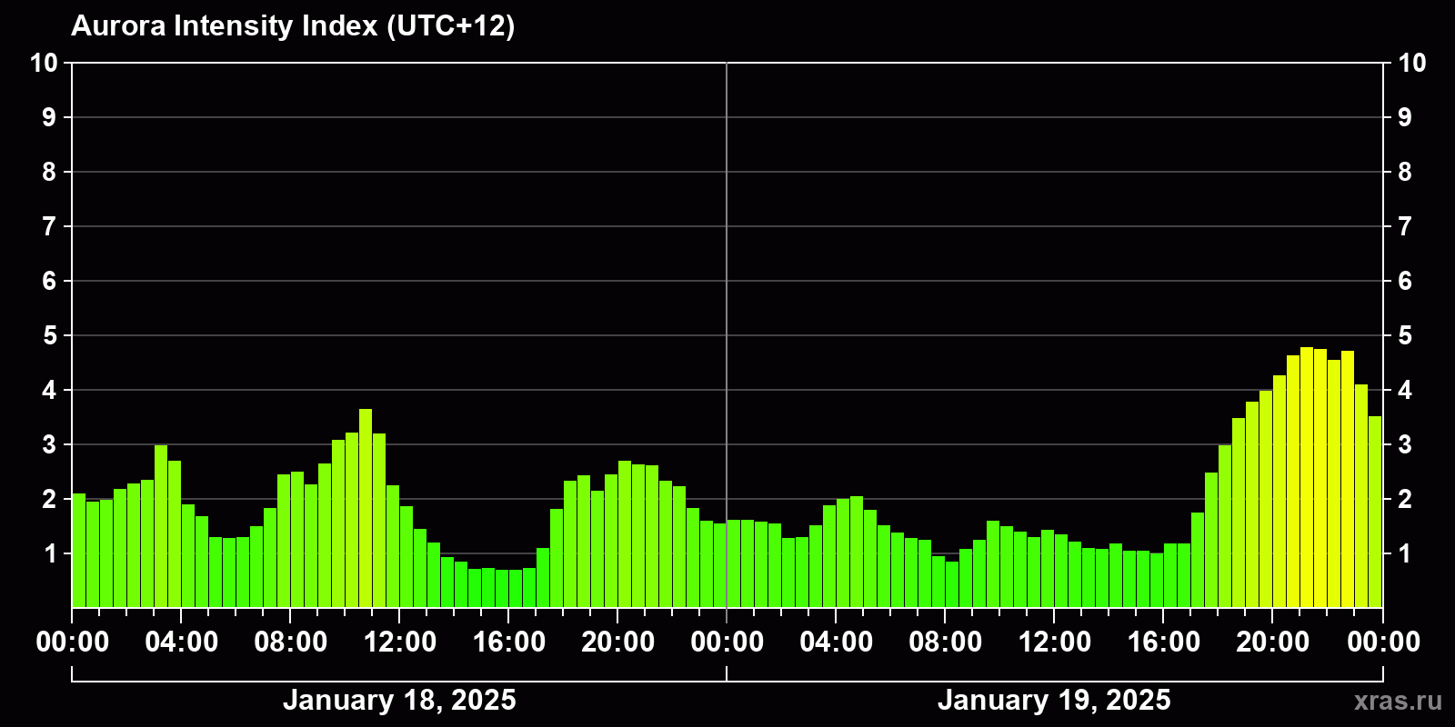 Changes in the auroral intensity index from 2025-01-18 to 2025-01-19 local time