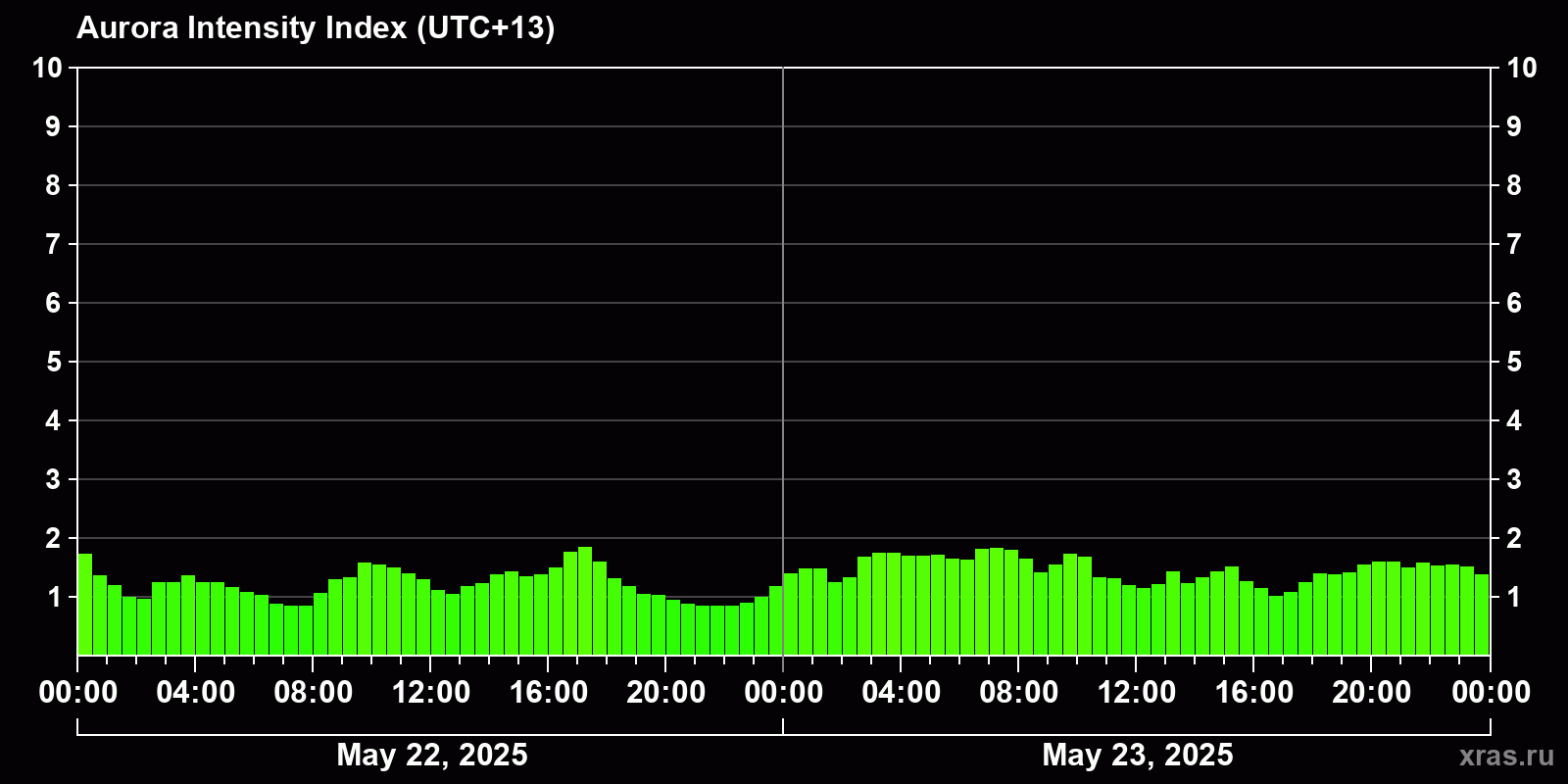 Changes in the auroral intensity index from 2025-05-22 to 2025-05-23 local time