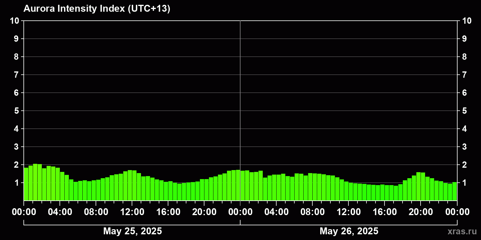 Changes in the auroral intensity index from 2025-05-25 to 2025-05-26 local time