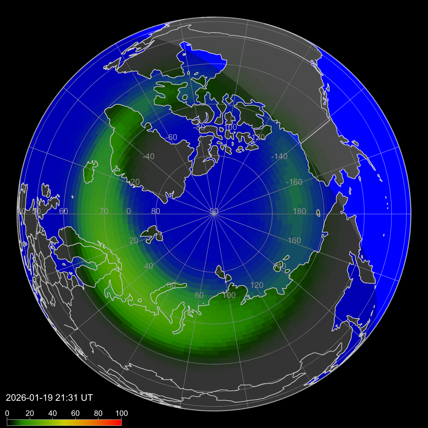 Интенсивность полярных сияний