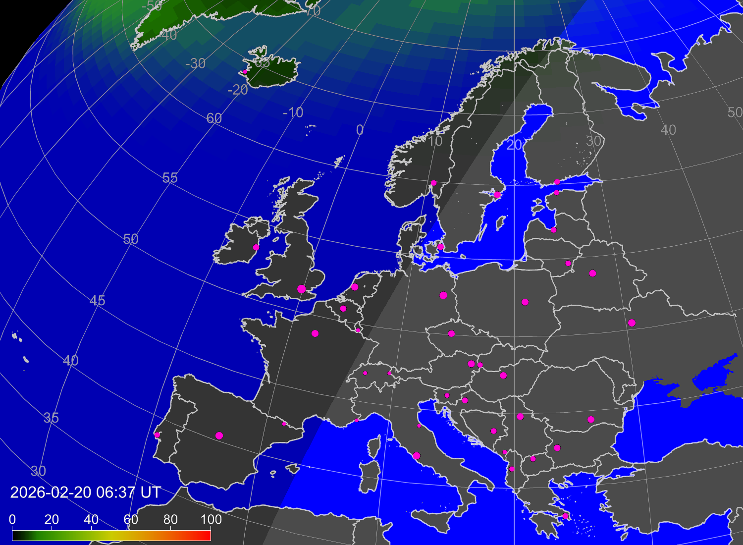 Вероятность полярных сияний в городах Европы