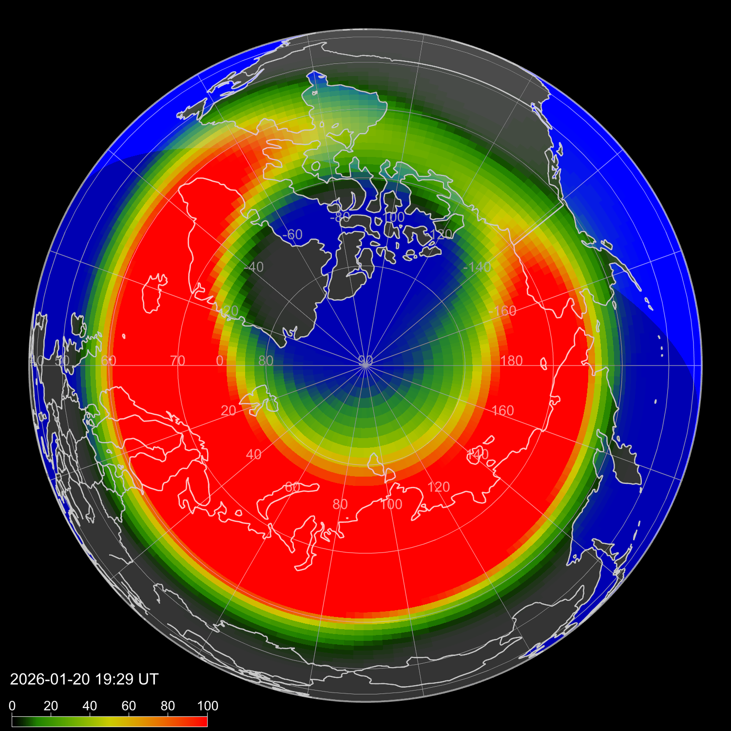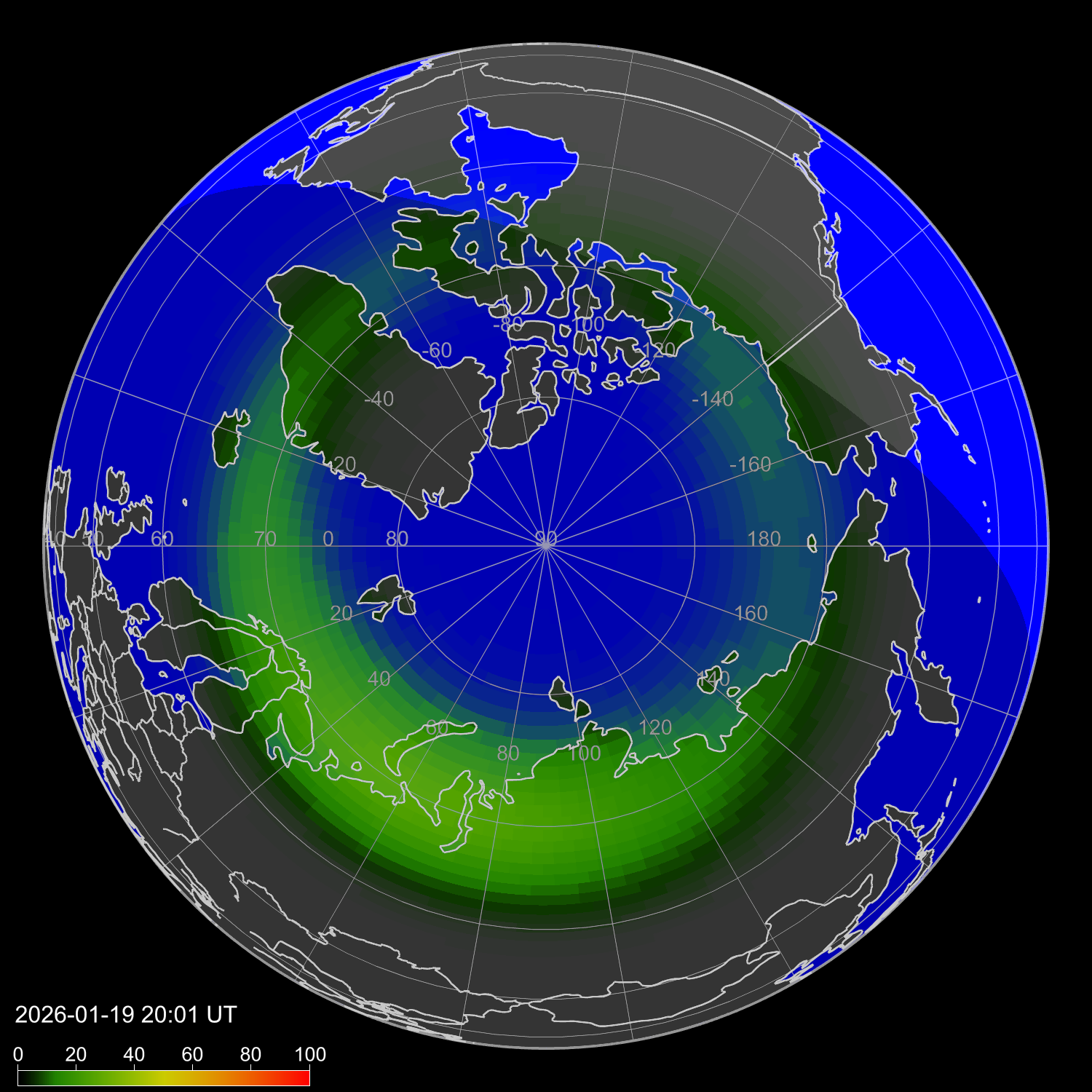 Зона полярных сияний в северном полушарии