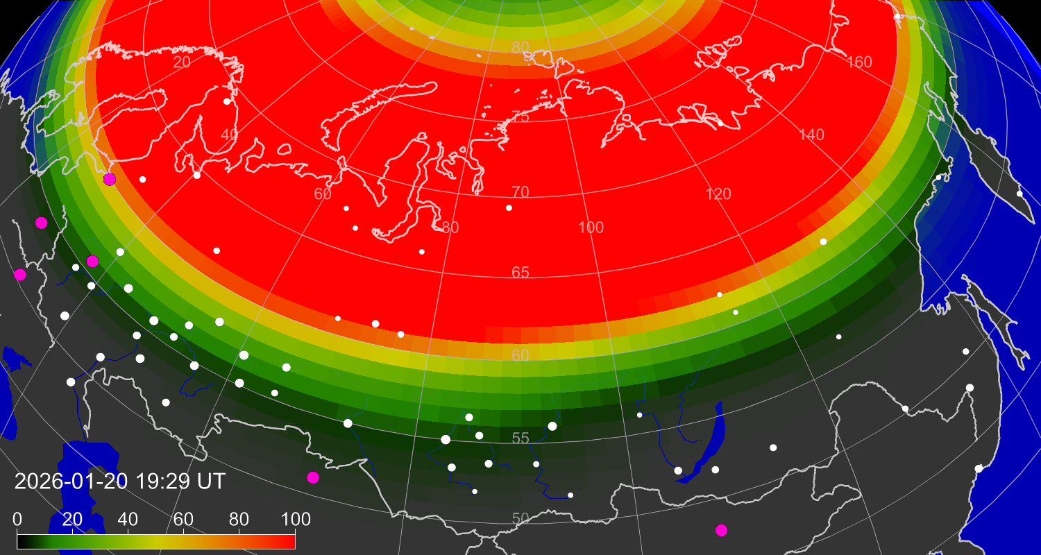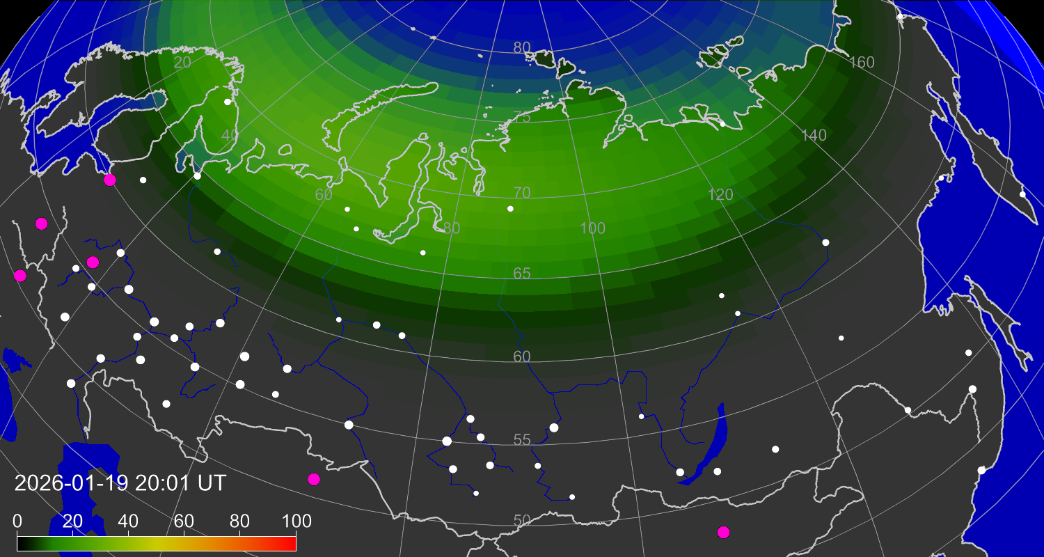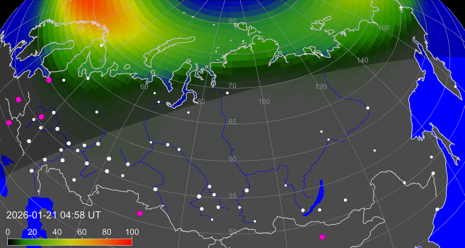 Зона полярных (северных) сияний над территорией Евразии