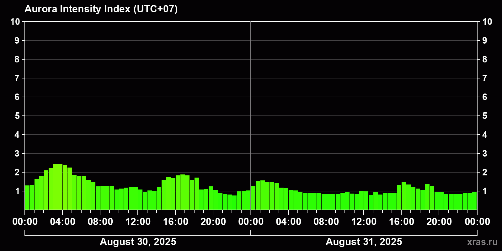 Auroras (northern lights) in Barnaul — Aug 31, 2025