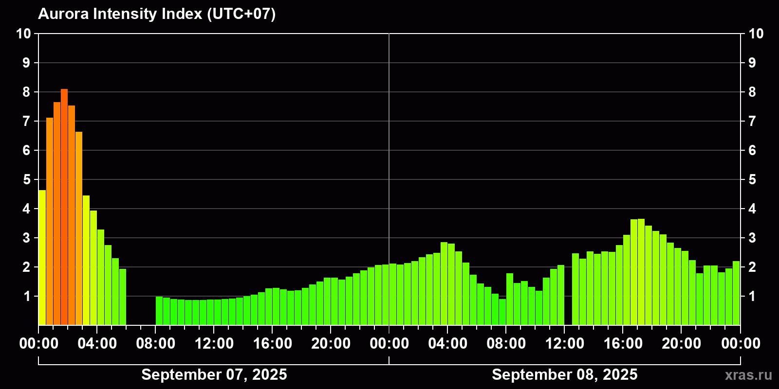 Auroras (northern lights) in Barnaul — Sep 08, 2025