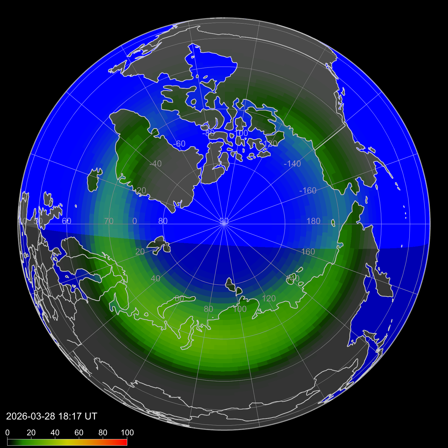 Интенсивность полярных сияний
