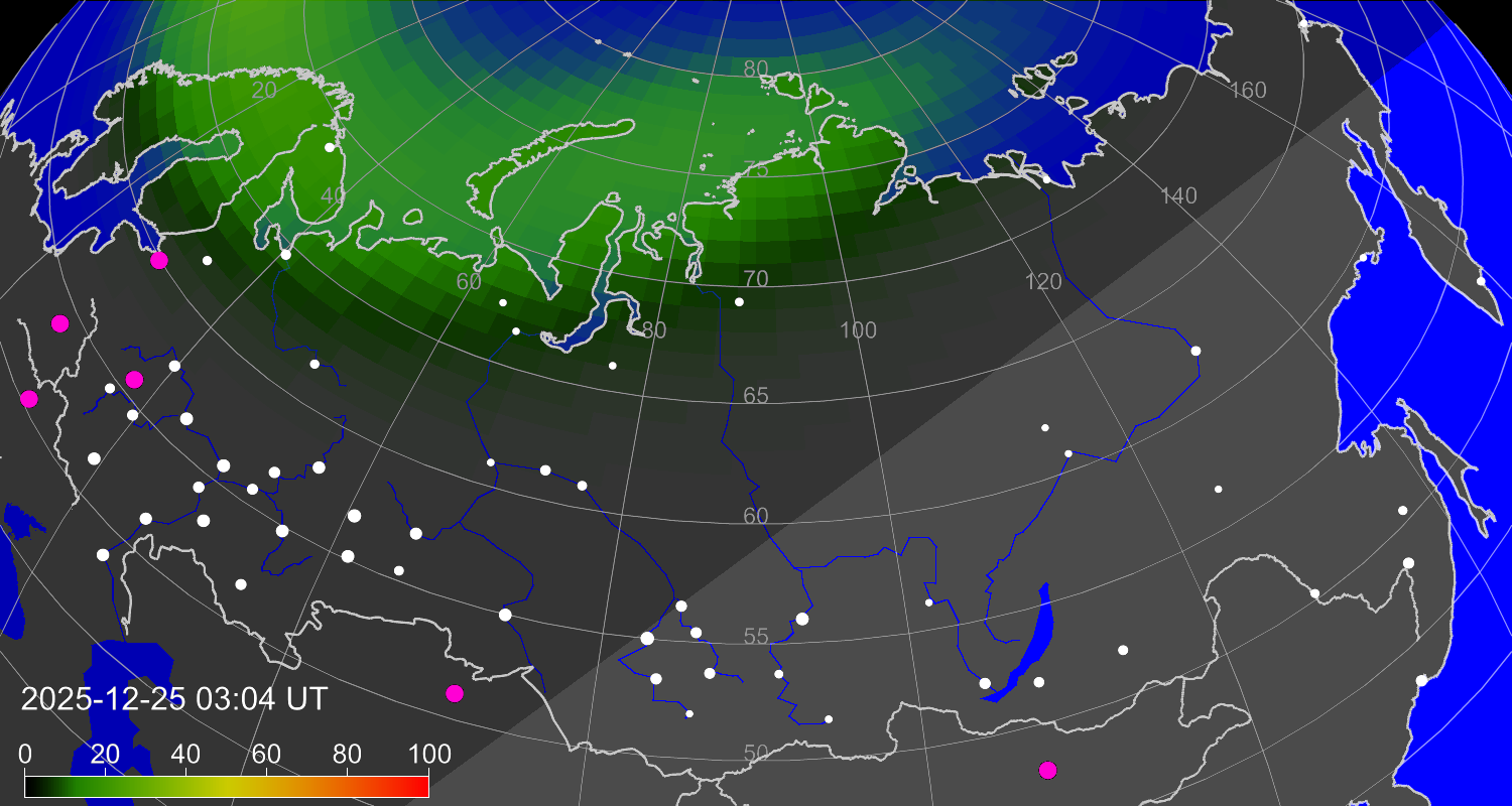 Зона полярных (северных) сияний над территорией Евразии