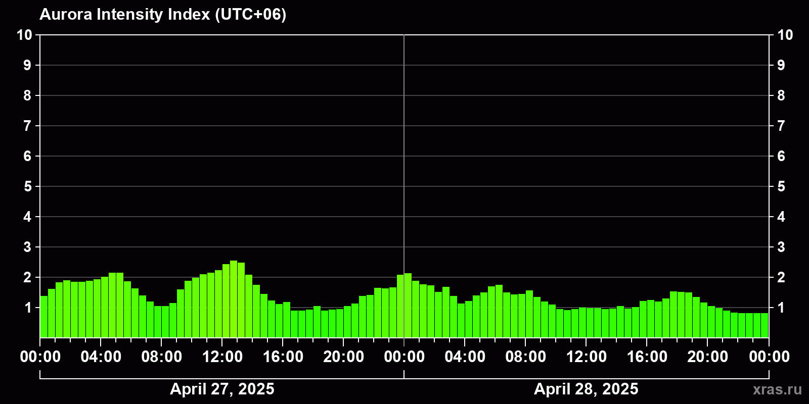 Changes in the auroral intensity index from 2025-04-27 to 2025-04-28 local time