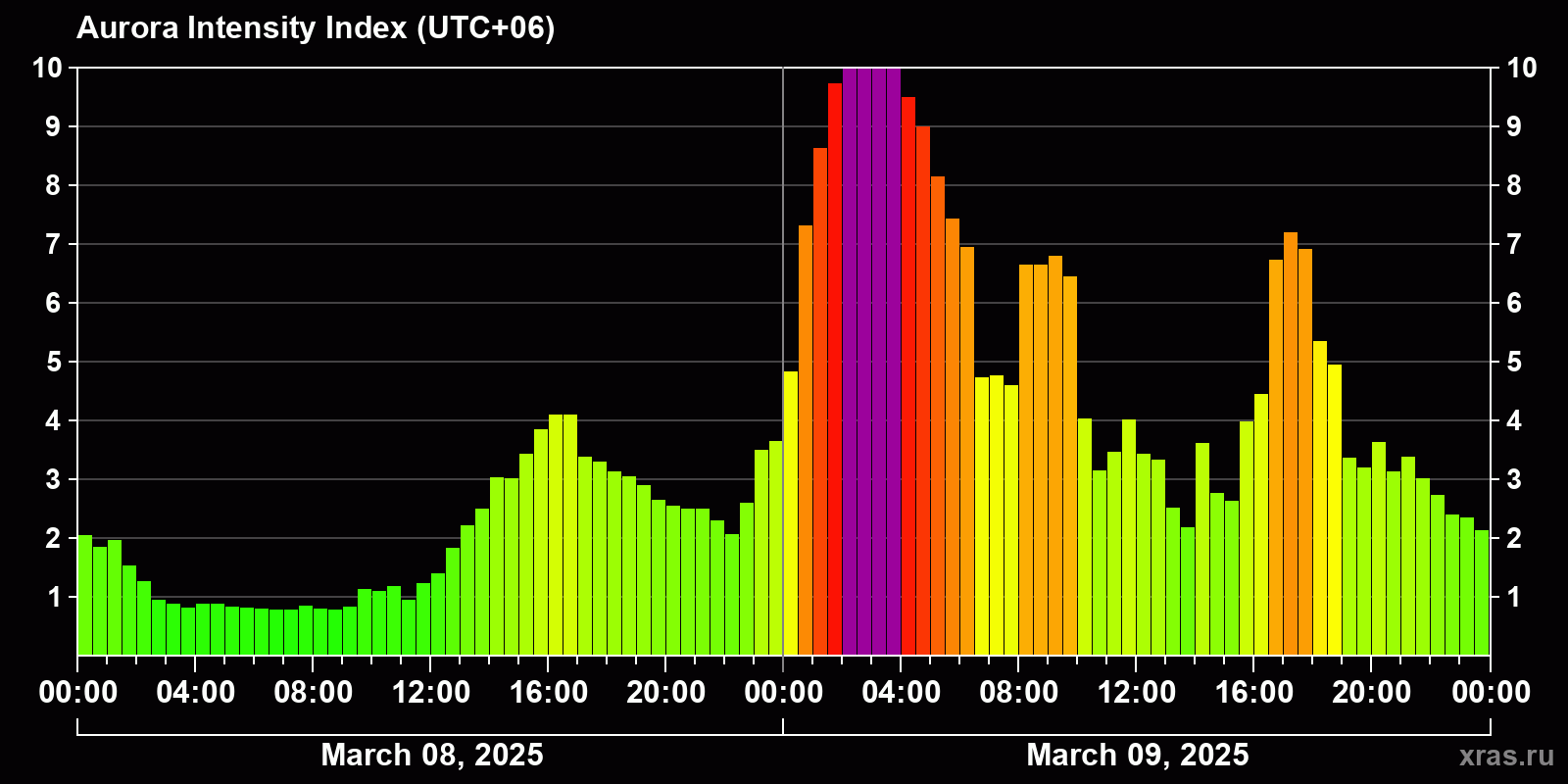 Auroras (northern lights) in Bishkek — Mar 09, 2025